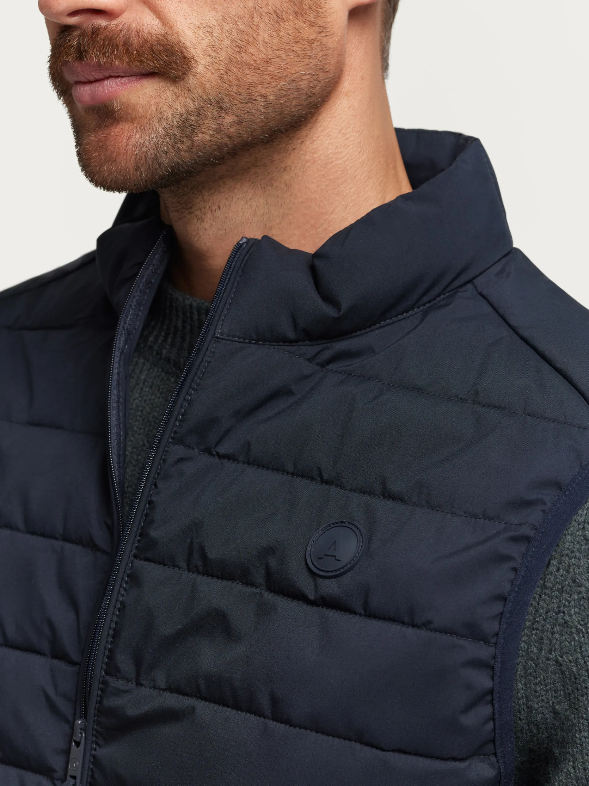 Chaleco con cierre central mediante cremallera y dos bolsillos en la cintura. Cuenta con cuello subido, logo grabado en el frontal y sisa y cintura en punto elástico. Corte regular fit.