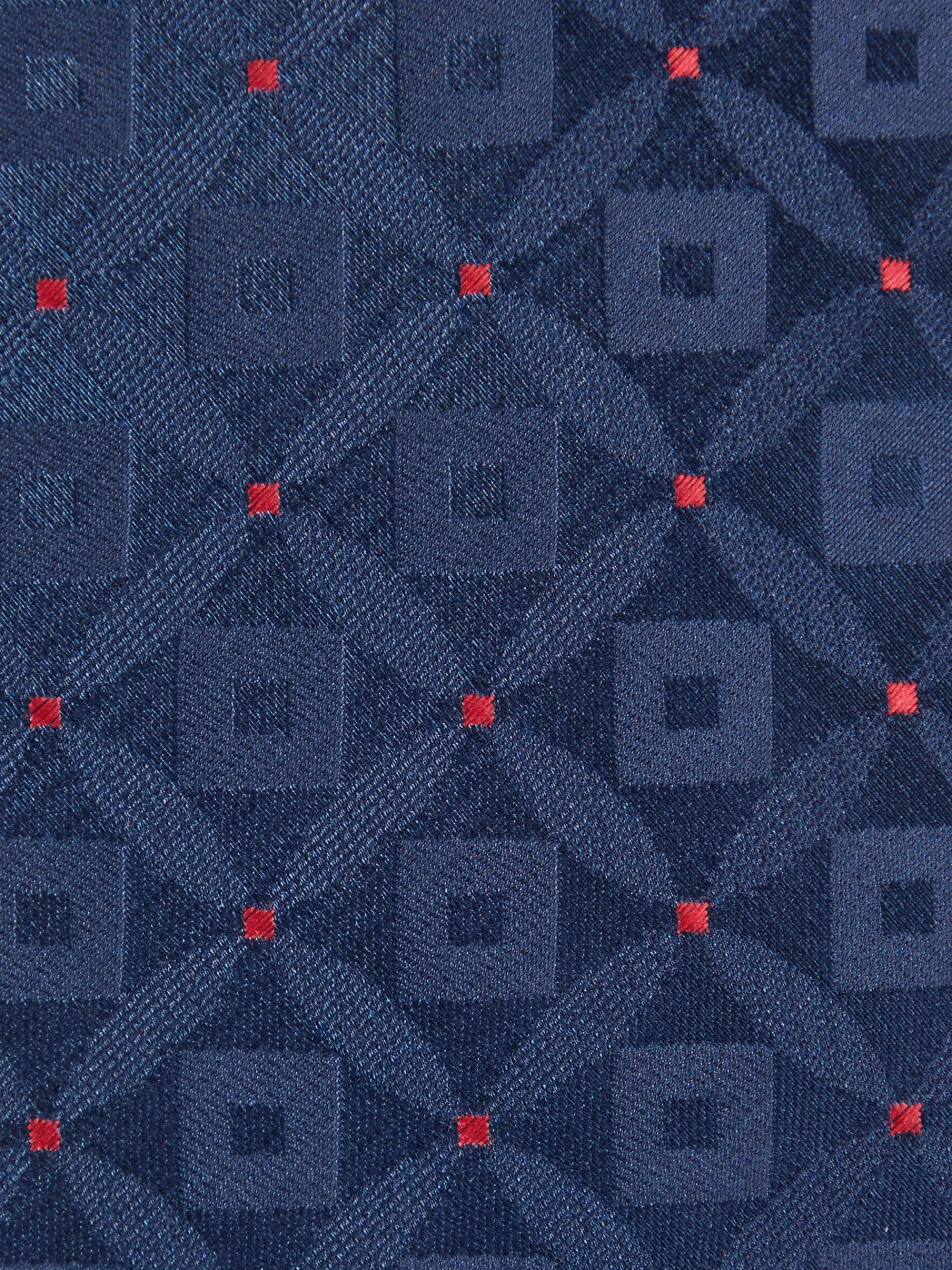 Corbata estilo jacquard con diseño estampado a contraste confeccionada en 100% poliéster. Cuenta con el logo de la marca grabado en el interior.