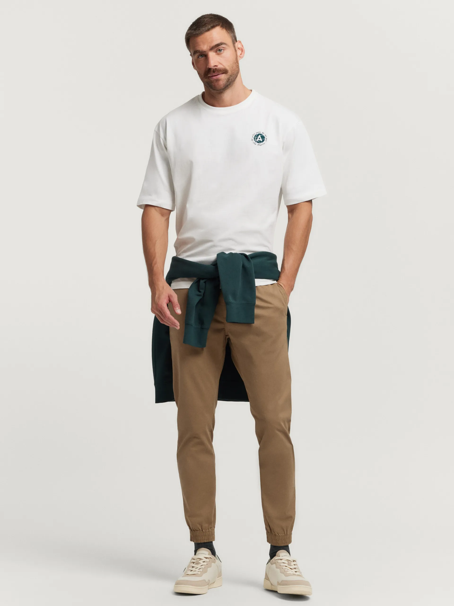 Camiseta de corte relaxed fit aportando un corte más relajado. Cuenta con estampado personalizado en el frontal y en la parte trasera, cuello redondo y manga corta ligeramente más anchas y largas.
