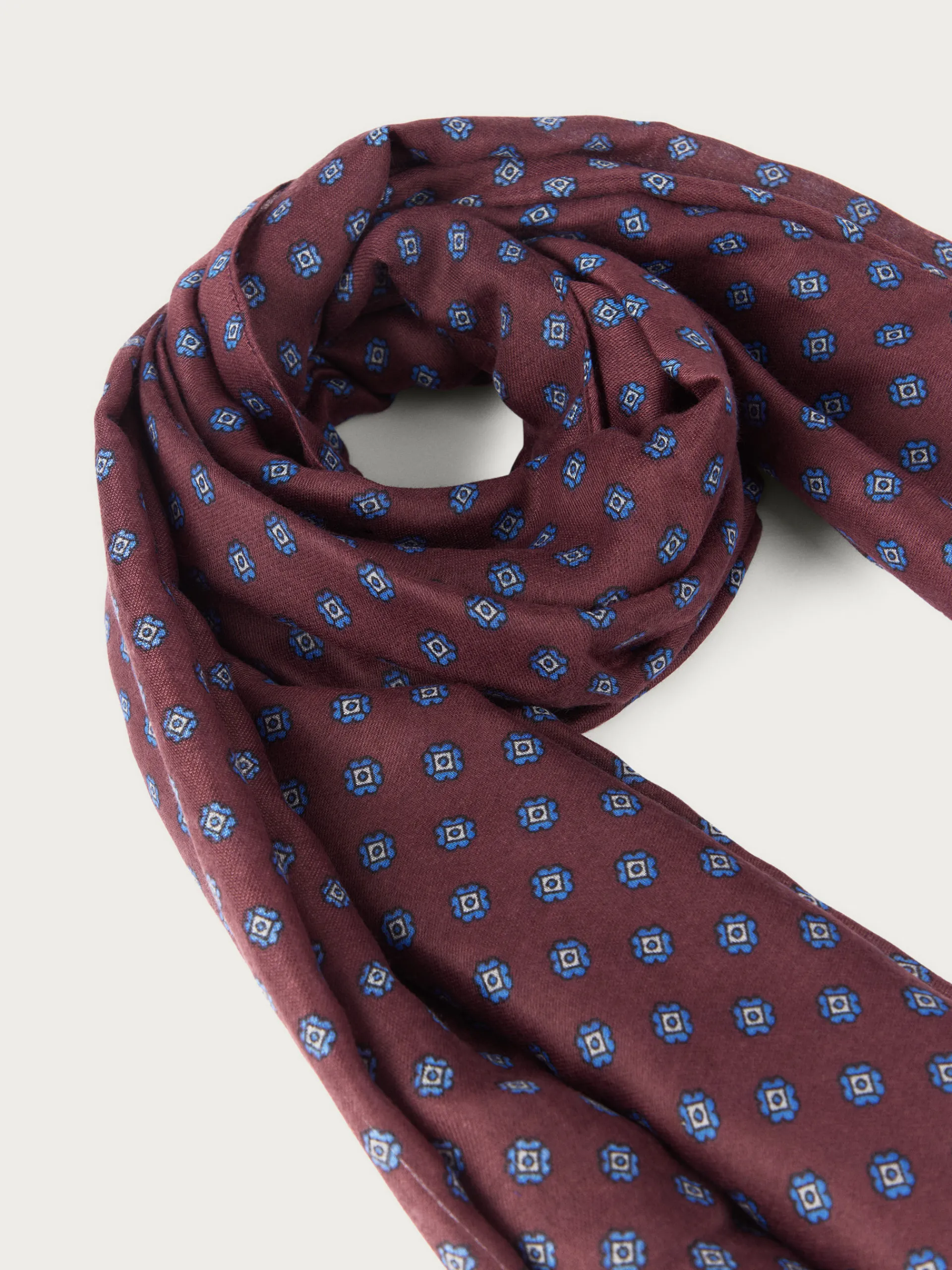 Foulard de diseño personalizado estampado confeccionado en tejido suave y cálido. Terminación con flecos.