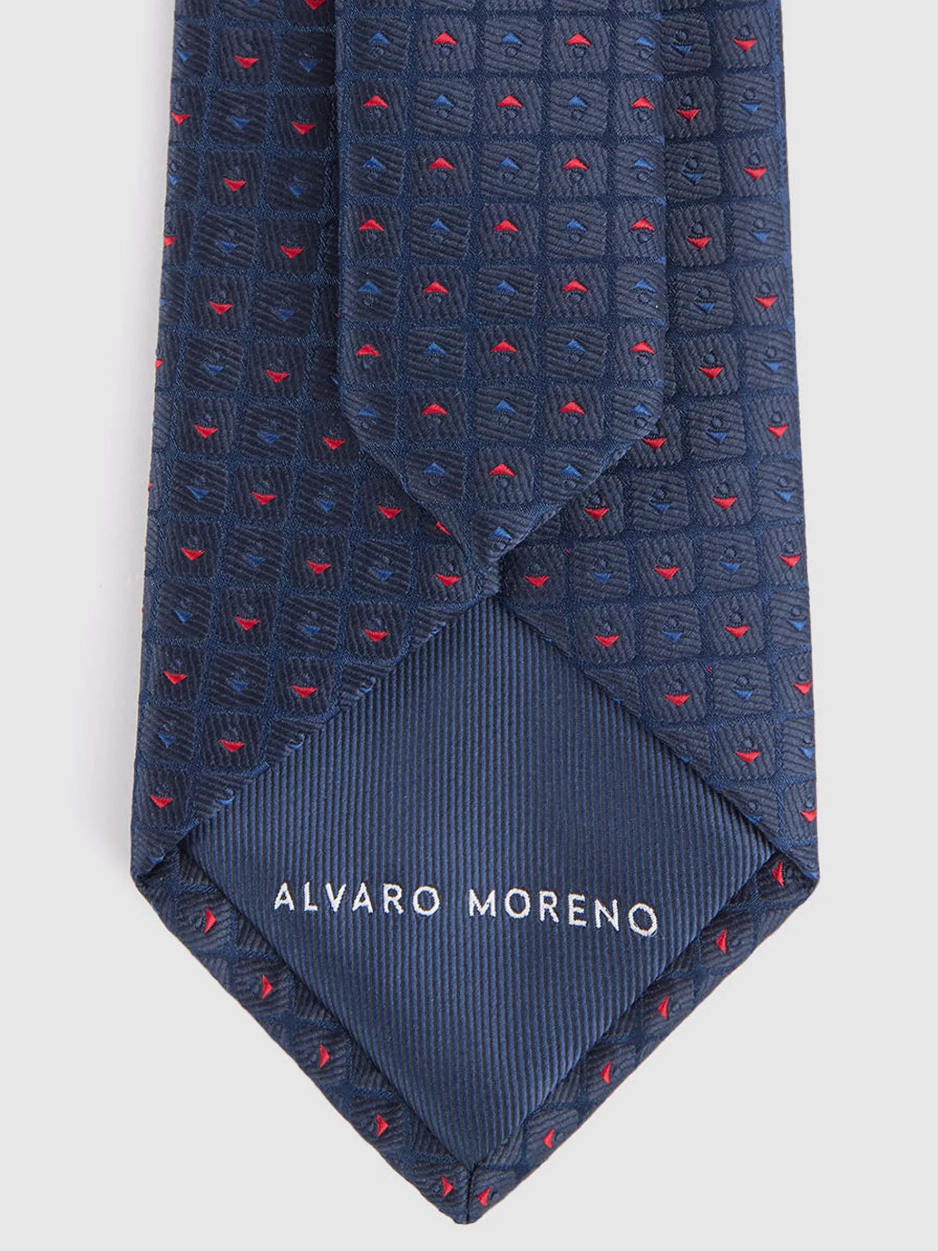 Corbata estilo jacquard con diseño estampado a contraste confeccionada en 100% poliéster. Cuenta con el logo de la marca grabado en el interior.