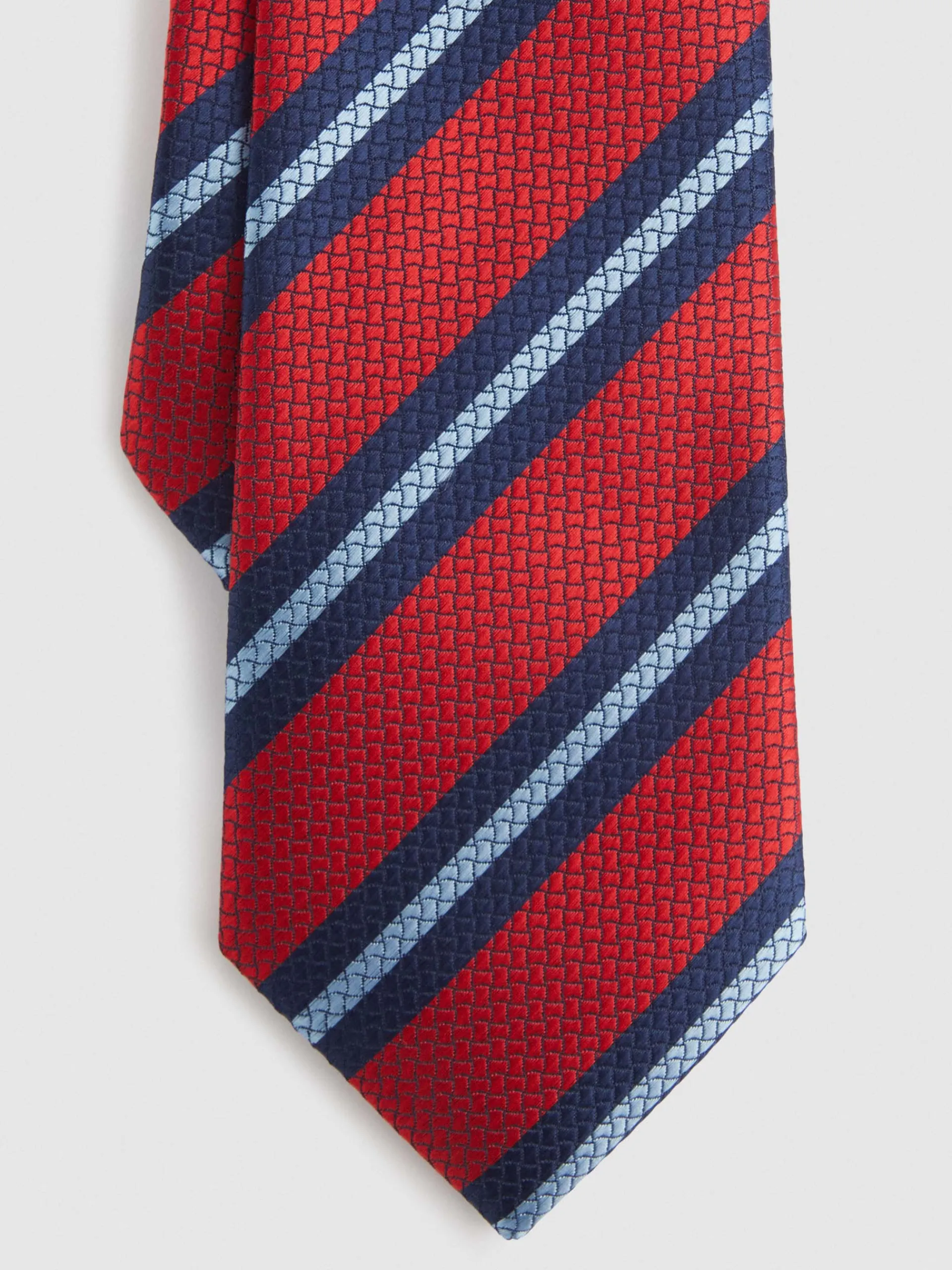Corbata estilo jacquard con diseño estampado a contraste confeccionada en 100% poliéster. Cuenta con el logo de la marca grabado en el interior.