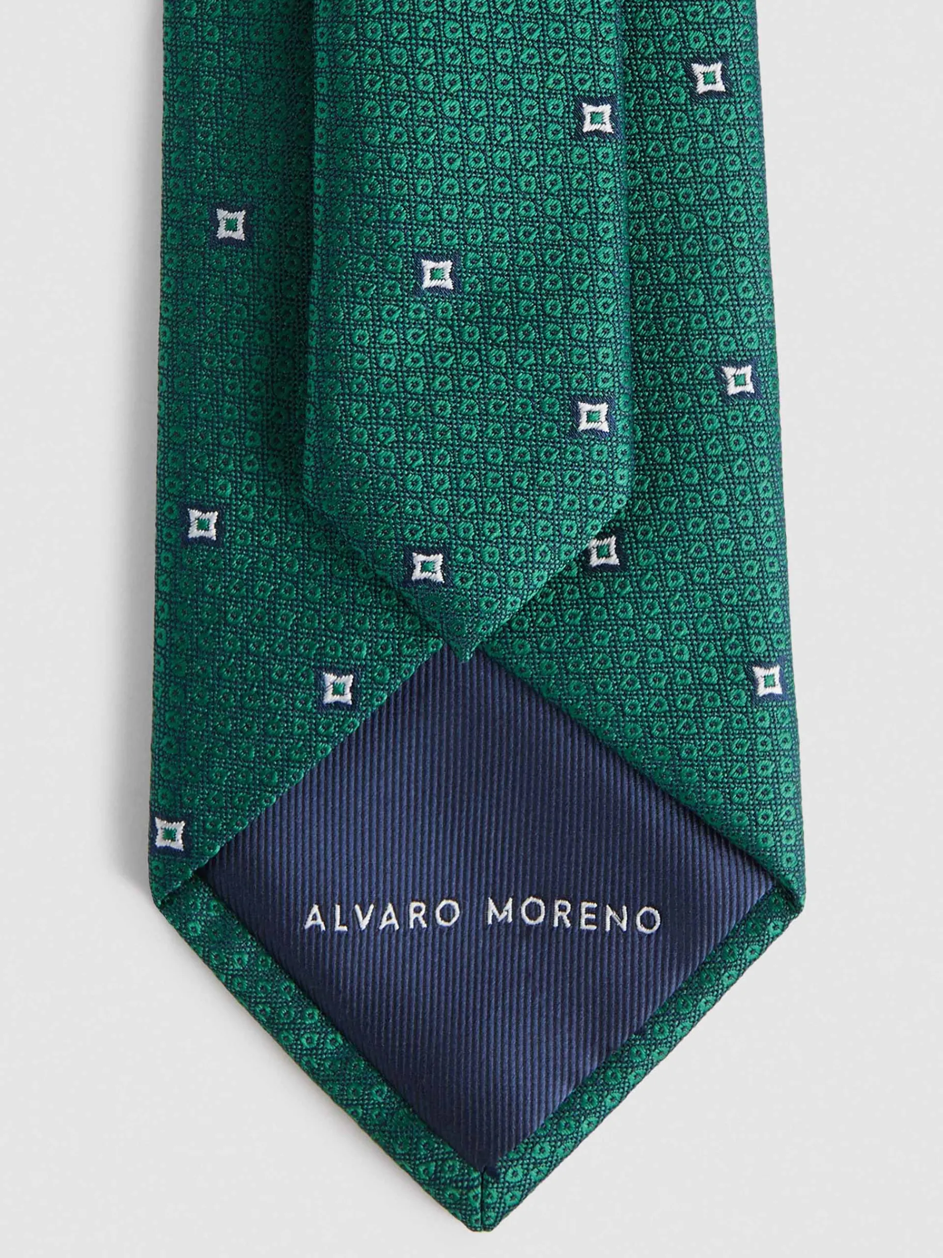 Corbata estilo jacquard con diseño estampado a contraste confeccionada en 100% poliéster. Cuenta con el logo de la marca grabado en el interior.