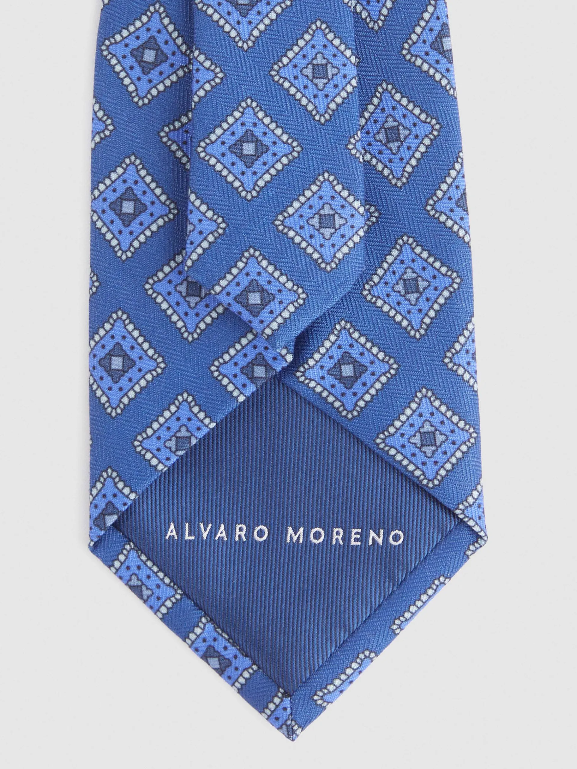 Corbata con diseño estampado personalizado confeccionada en 100% poliéster. Cuenta con el logo de la marca grabado en el interior.