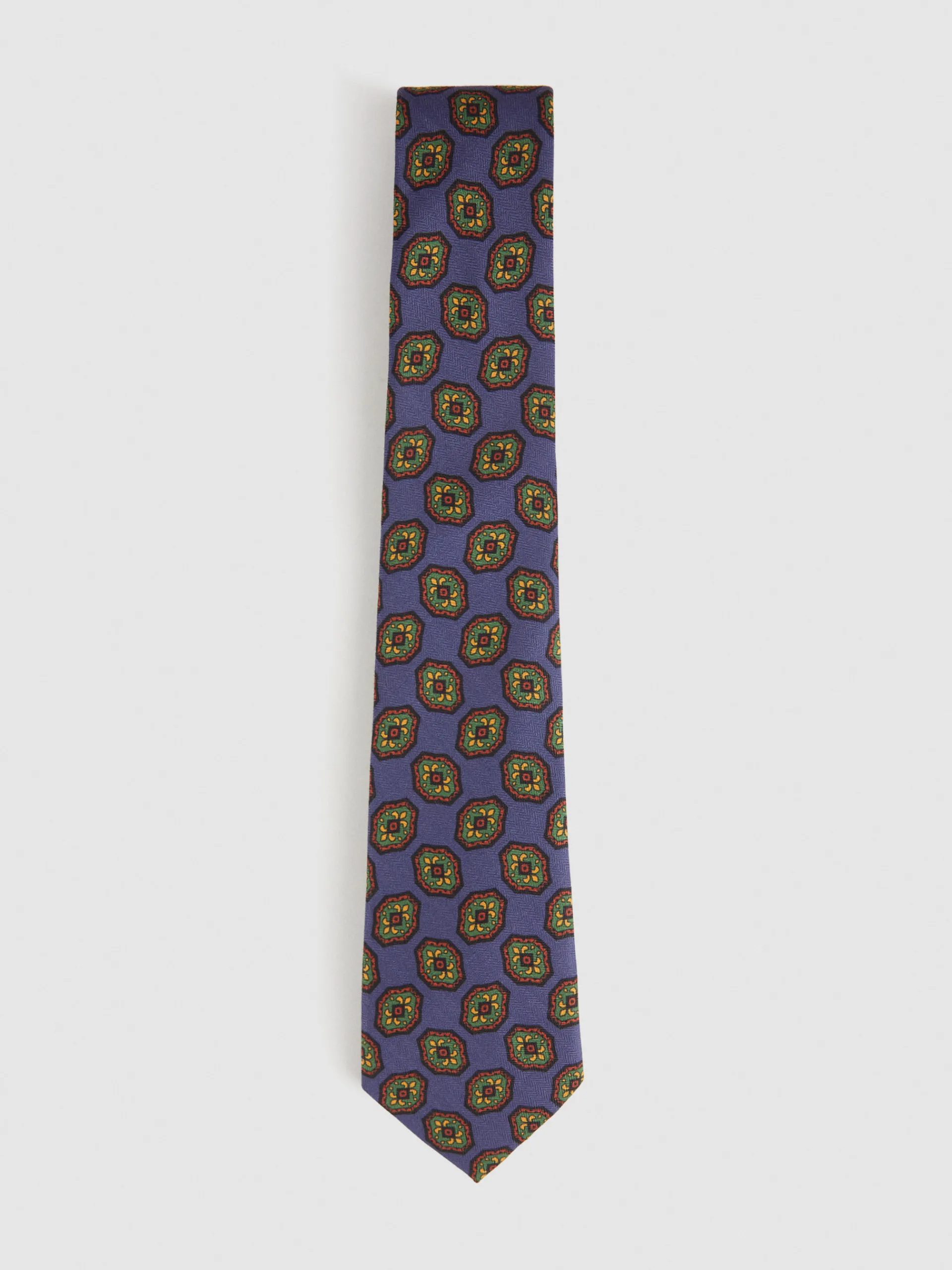 Corbata con diseño estampado personalizado confeccionada en 100% poliéster. Cuenta con el logo de la marca grabado en el interior.