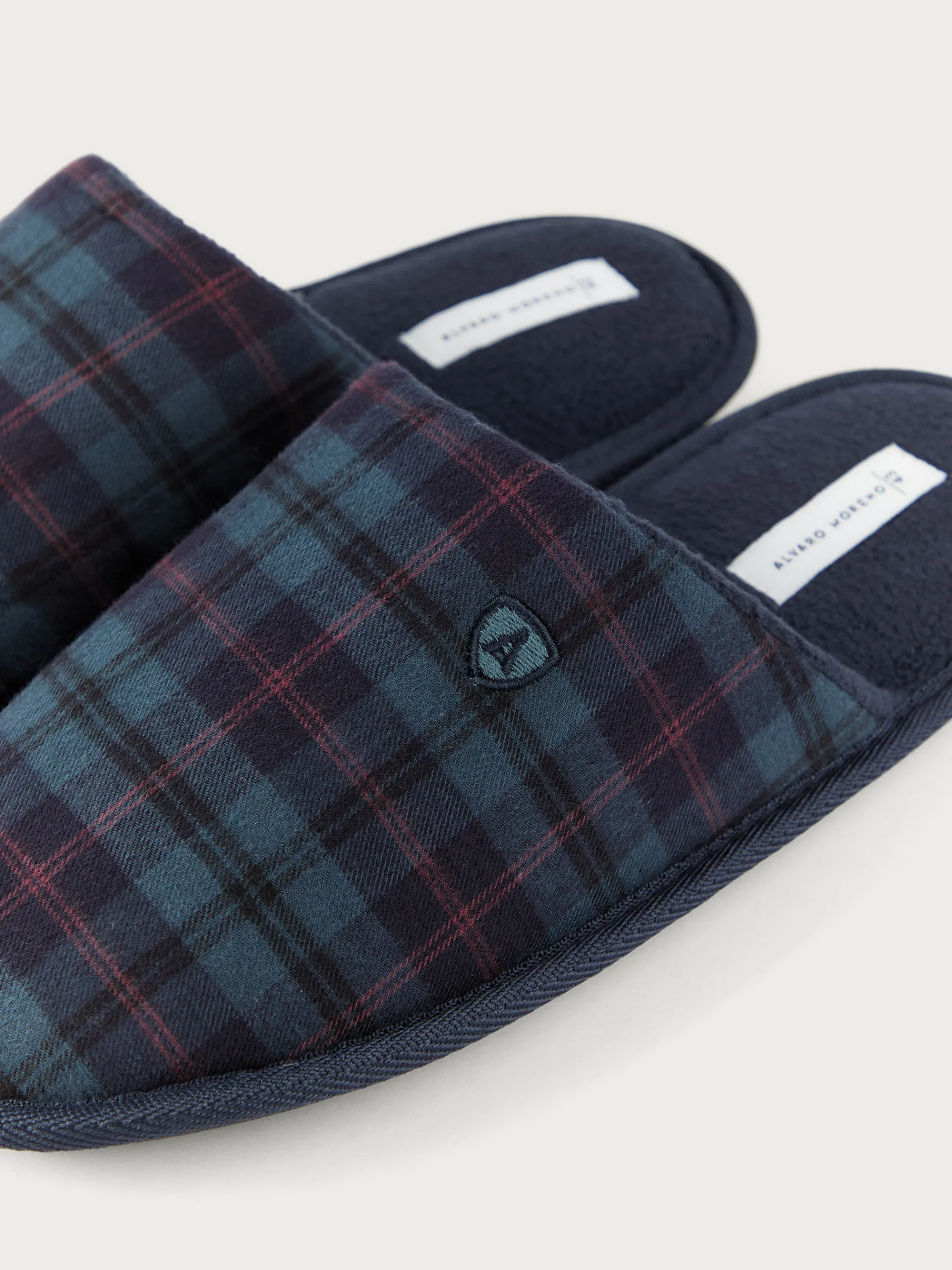 Zapatillas de estar por casa con diseño de cuadros en su exterior. Interior forrado en algodón aportando calidez y suela de goma.