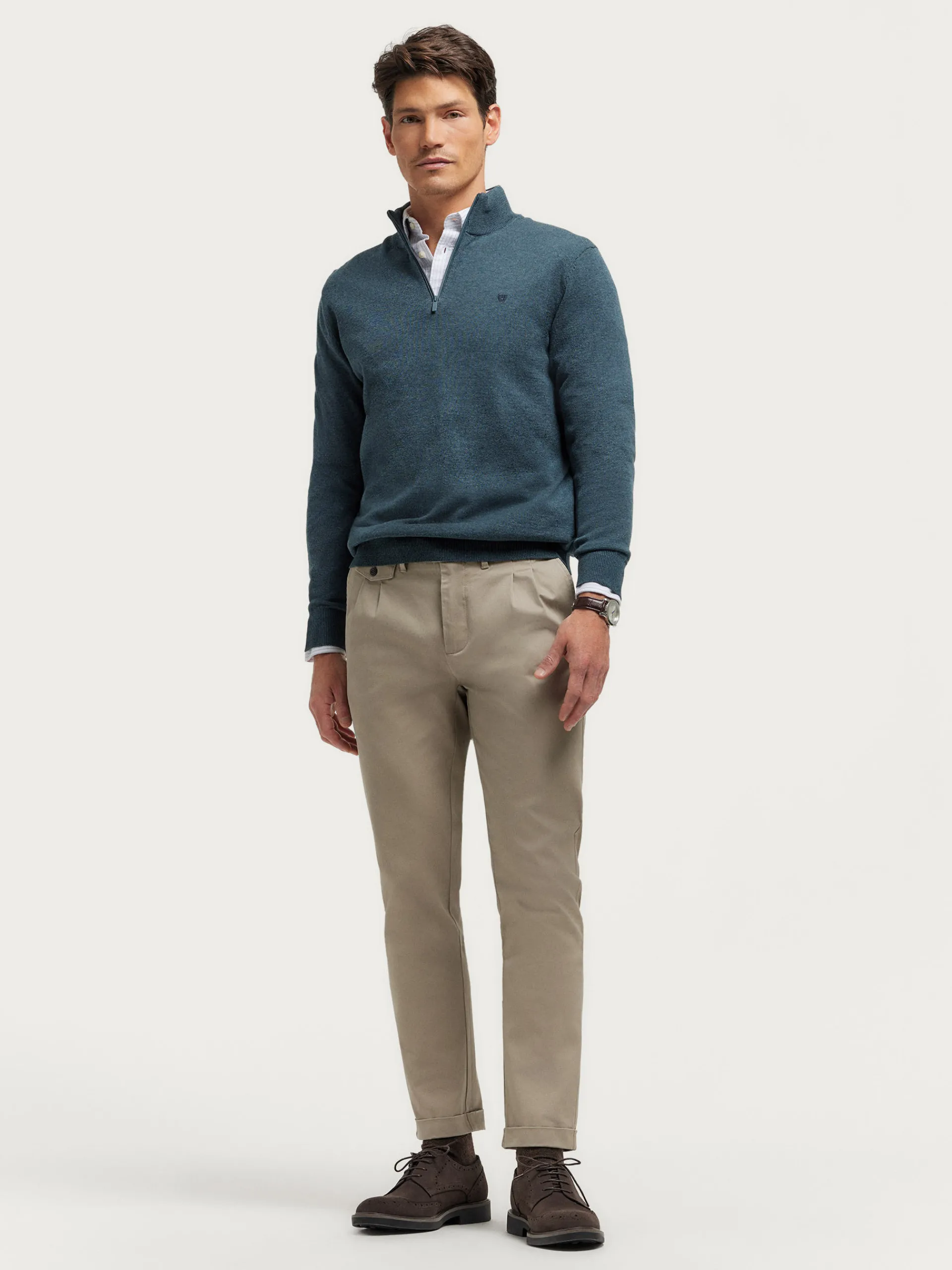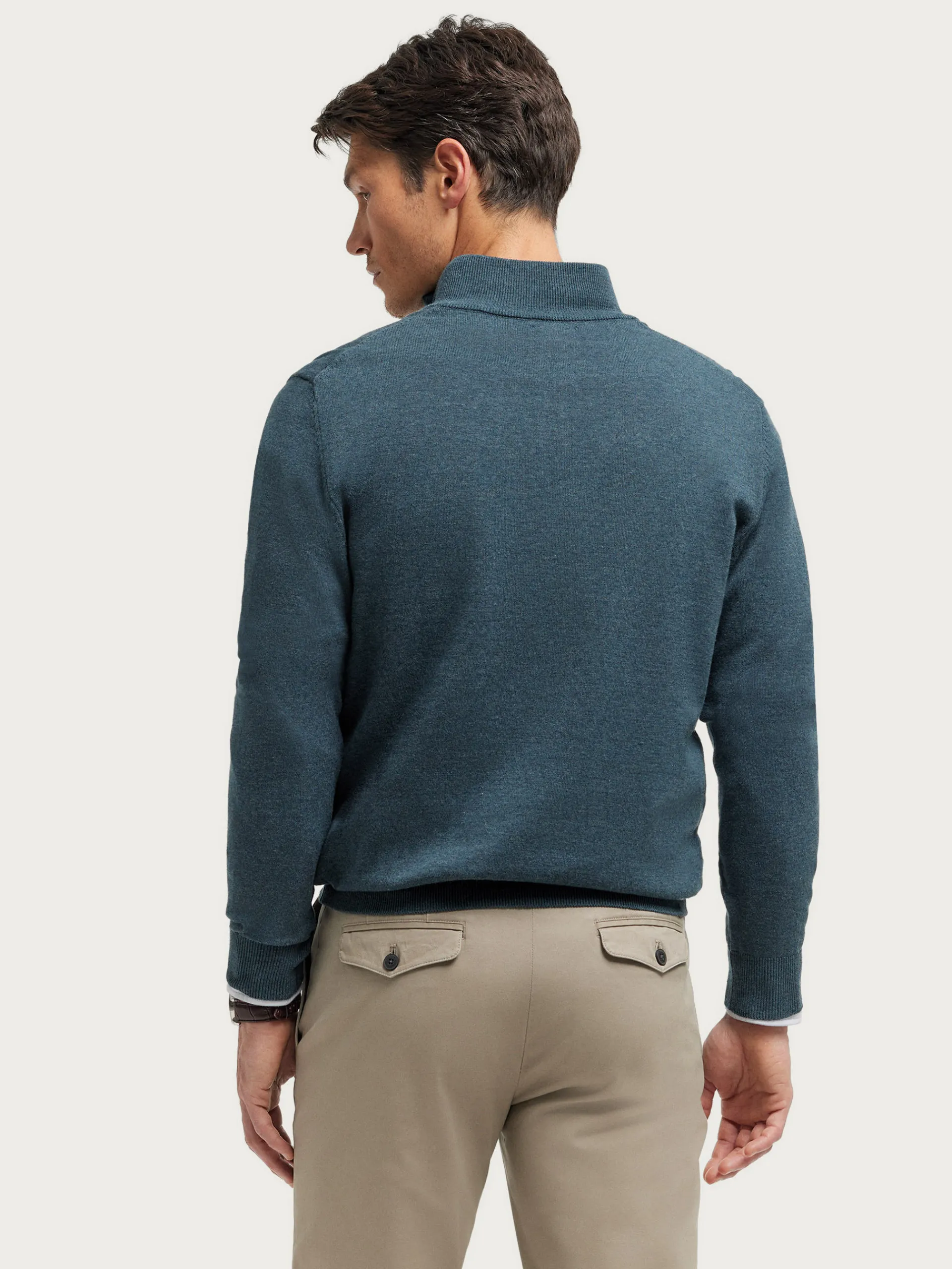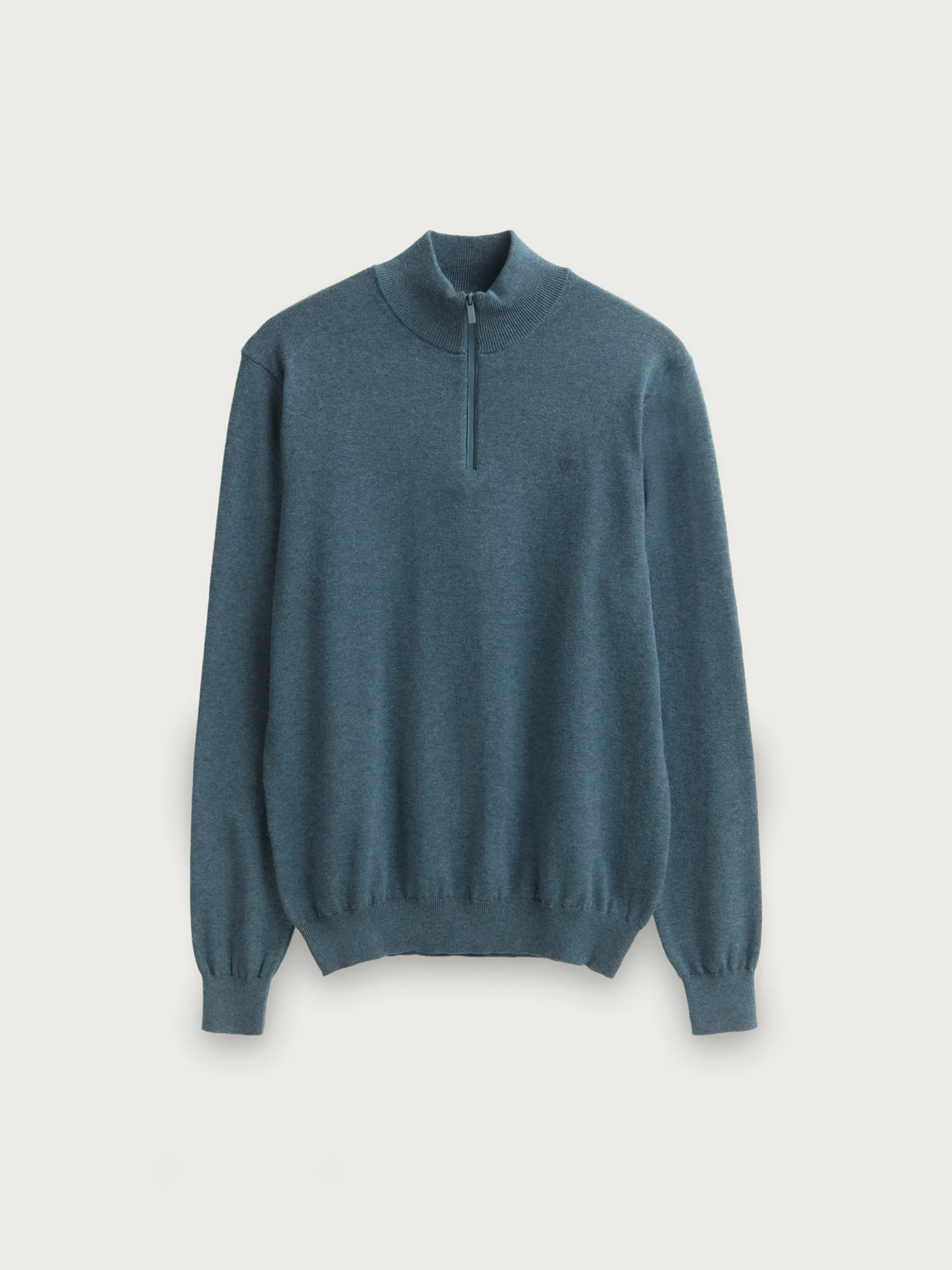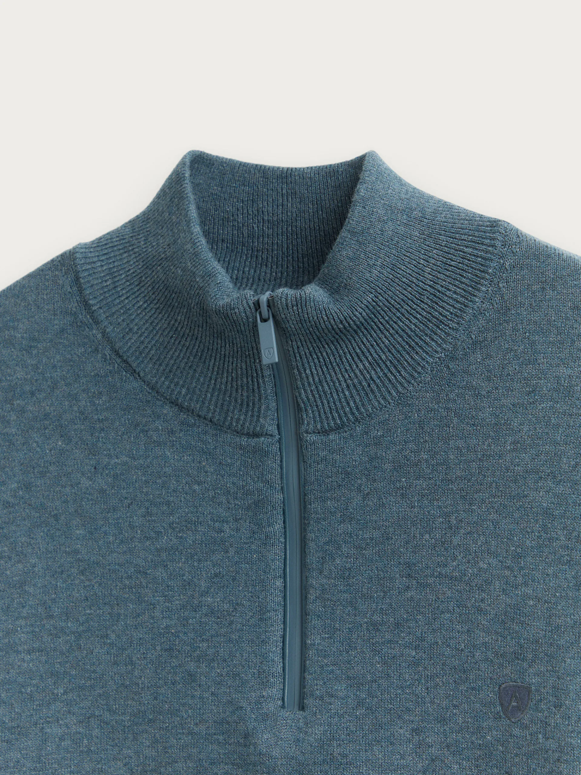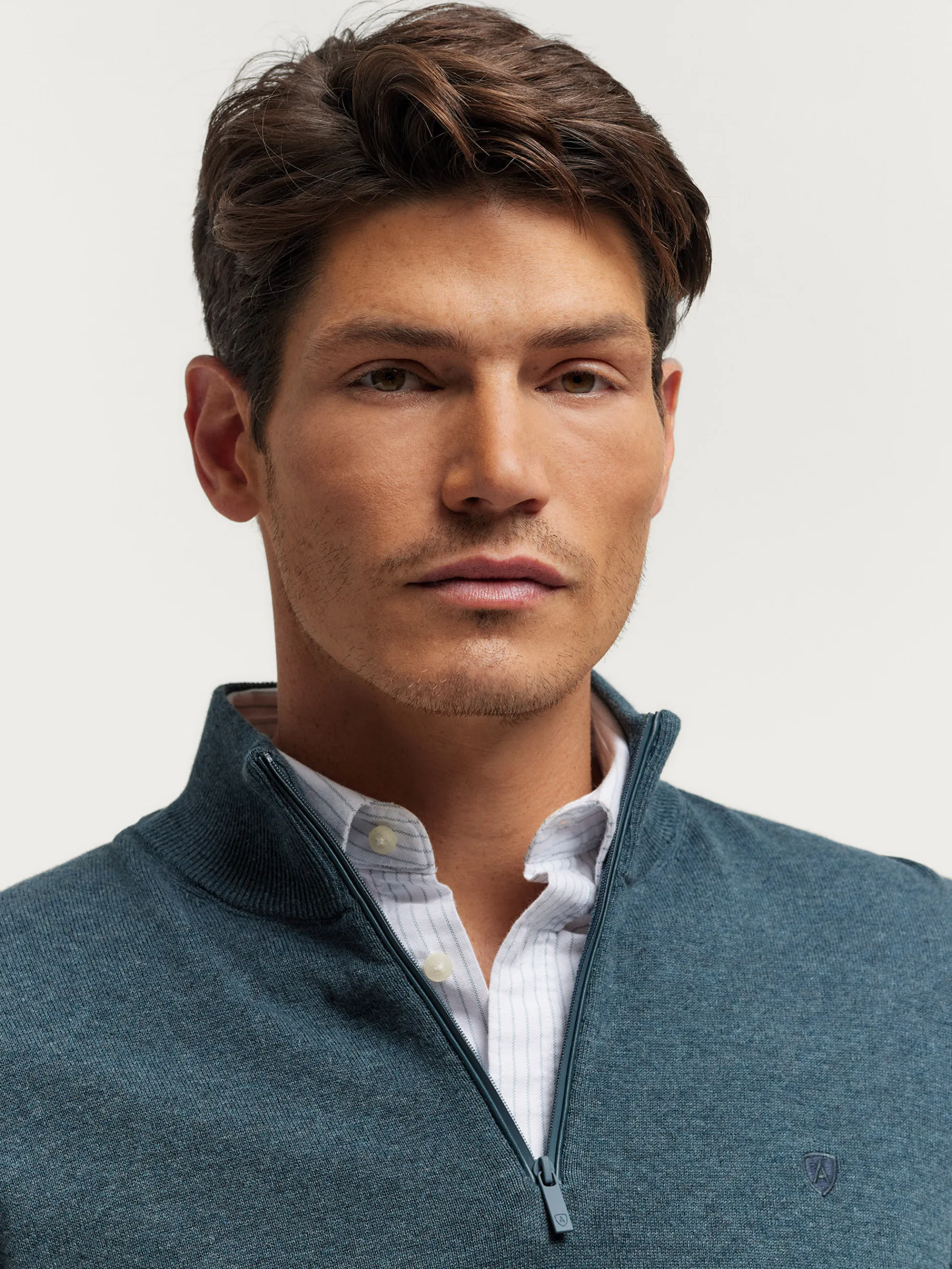 Jersey de corte regular confeccionado en algodón. Cuello alto con medio cierre de cremallera. Logo bordado en el frontal al tono. Cuello, puños y bajo en acabado elástico.