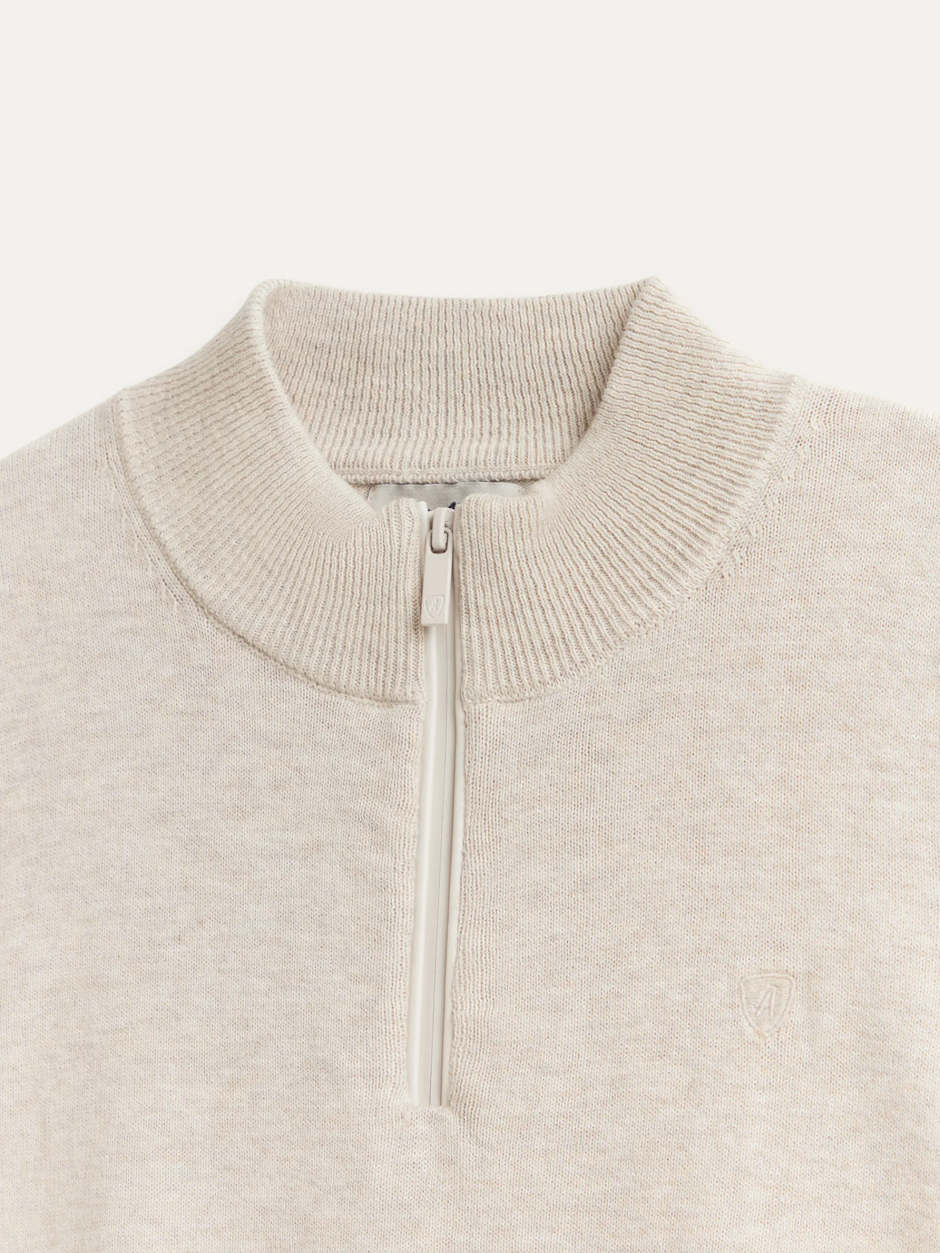 Jersey de corte regular confeccionado en algodón. Cuello alto con medio cierre de cremallera. Logo bordado en el frontal al tono. Cuello, puños y bajo en acabado elástico.