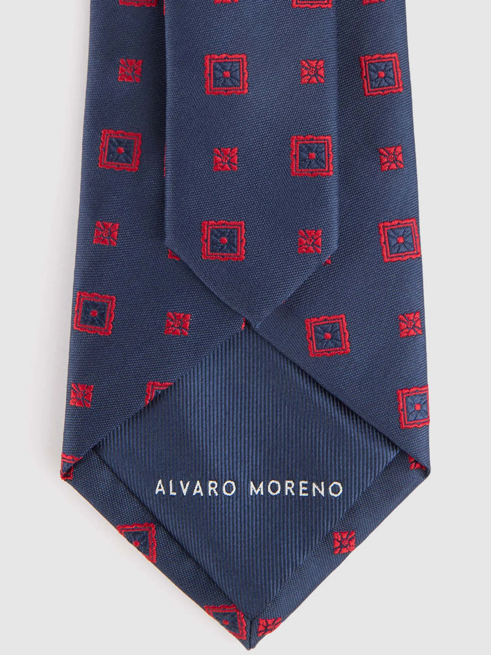 Corbata estilo jacquard con diseño estampado a contraste confeccionada en 100% poliéster. Cuenta con el logo de la marca grabado en el interior.