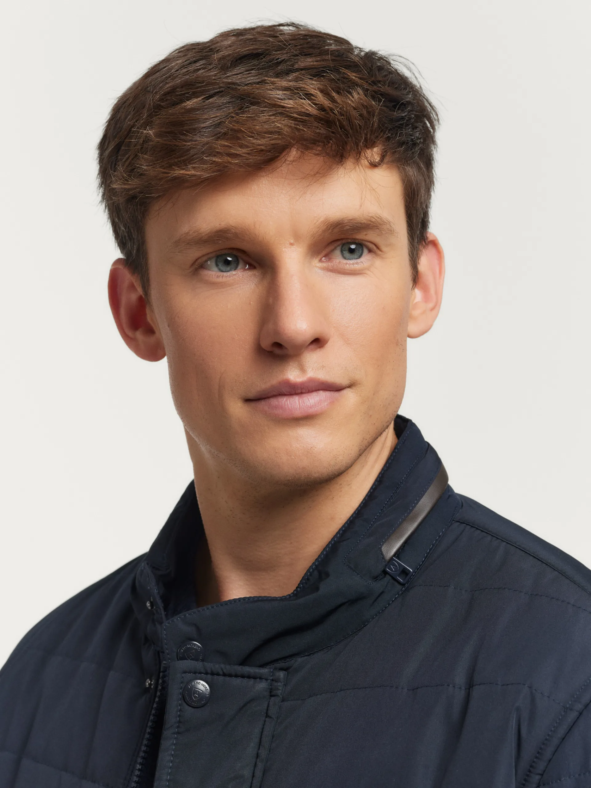 Cazadora acolchada con cuello subido y cremallera decorativa. Cuenta con cierre central de cremallera oculta por tapeta de botones a presión, manga larga con puños ajustables y dos bolsillos en la cintura. Parche en el pecho con el logo de la marca.
