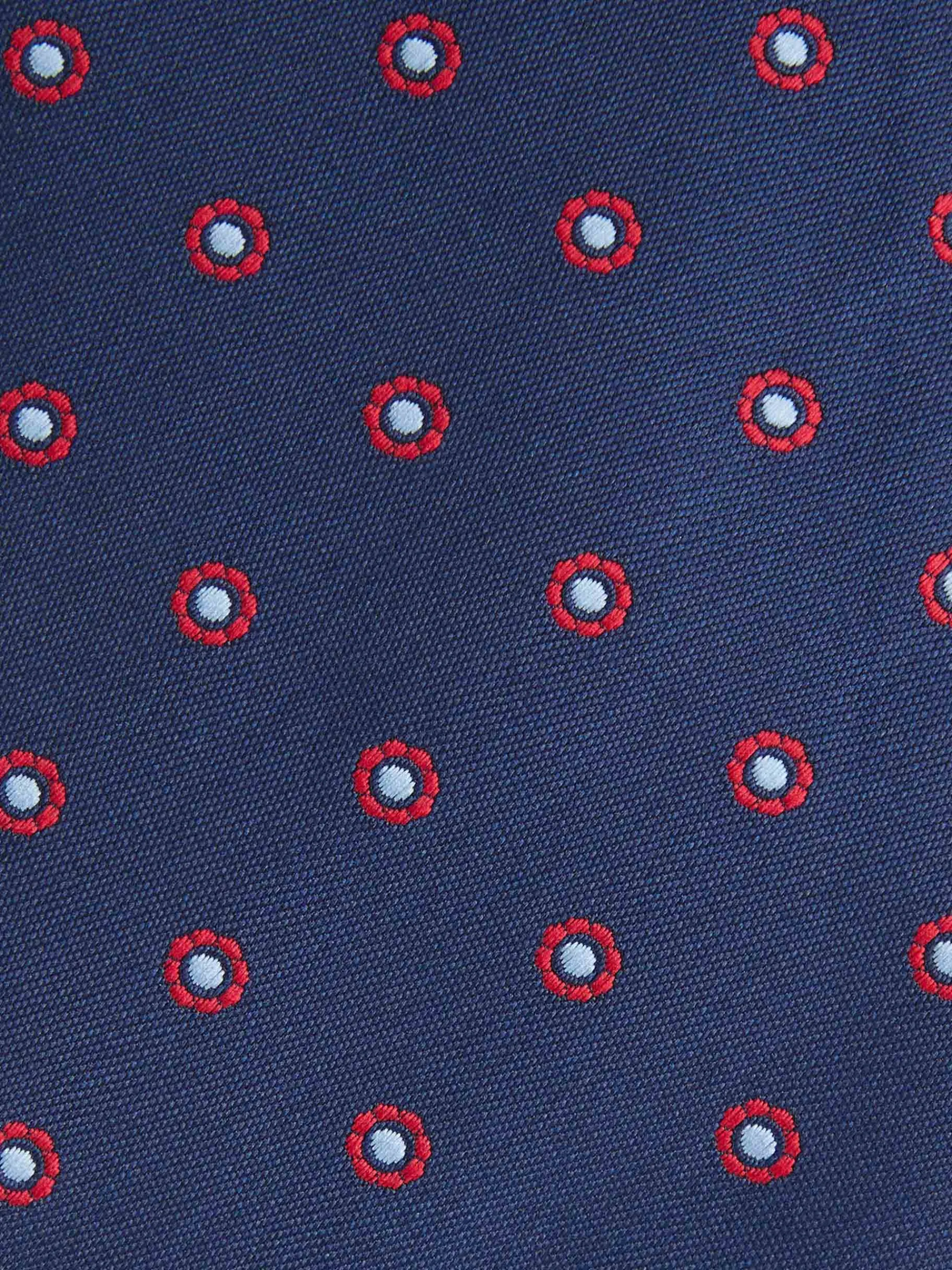 Corbata estilo jacquard con diseño estampado a contraste confeccionada en 100% poliéster. Cuenta con el logo de la marca grabado en el interior.