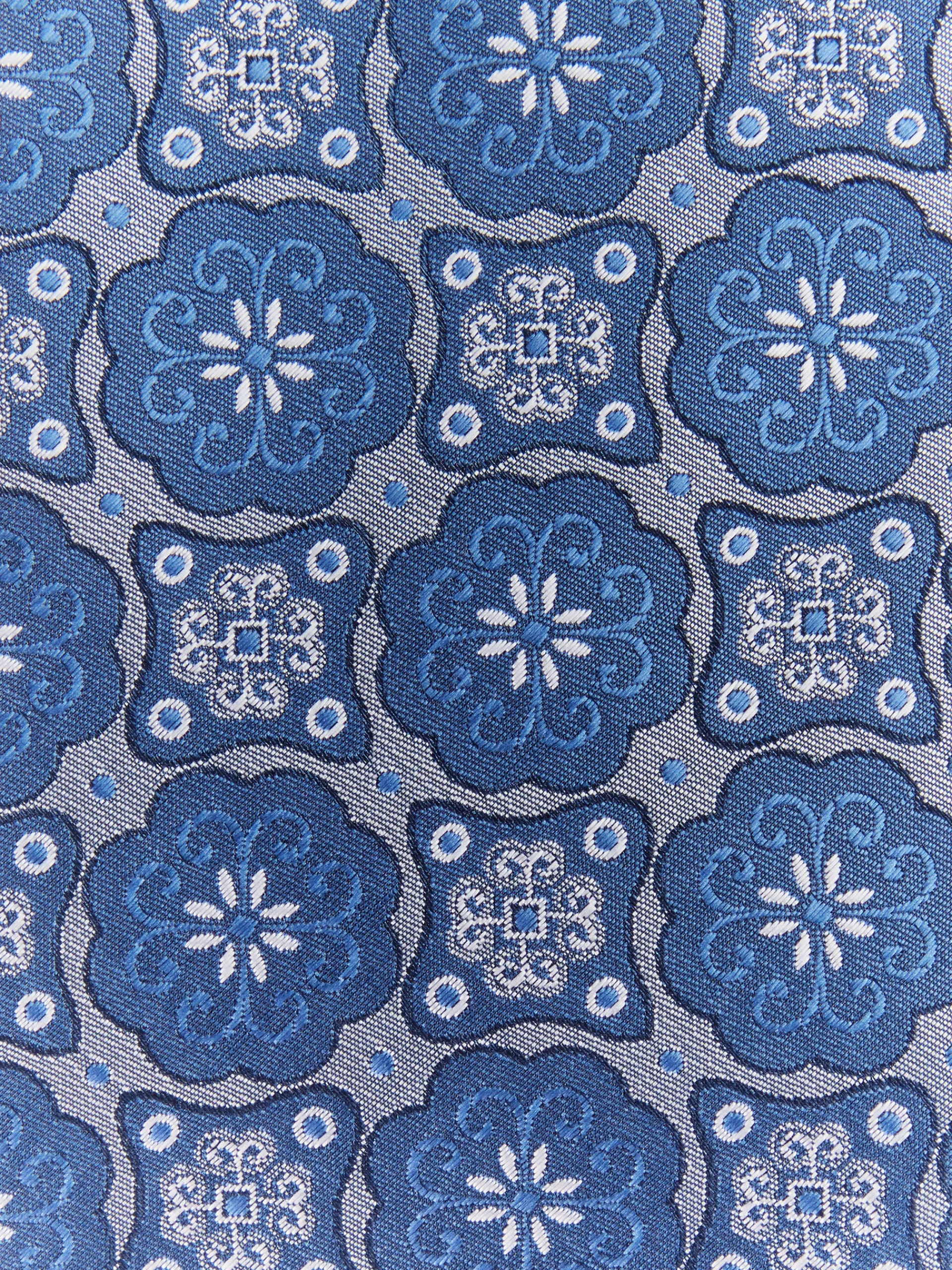 Corbata estilo jacquard con diseño estampado a contraste confeccionada en 100% poliéster. Cuenta con el logo de la marca grabado en el interior.