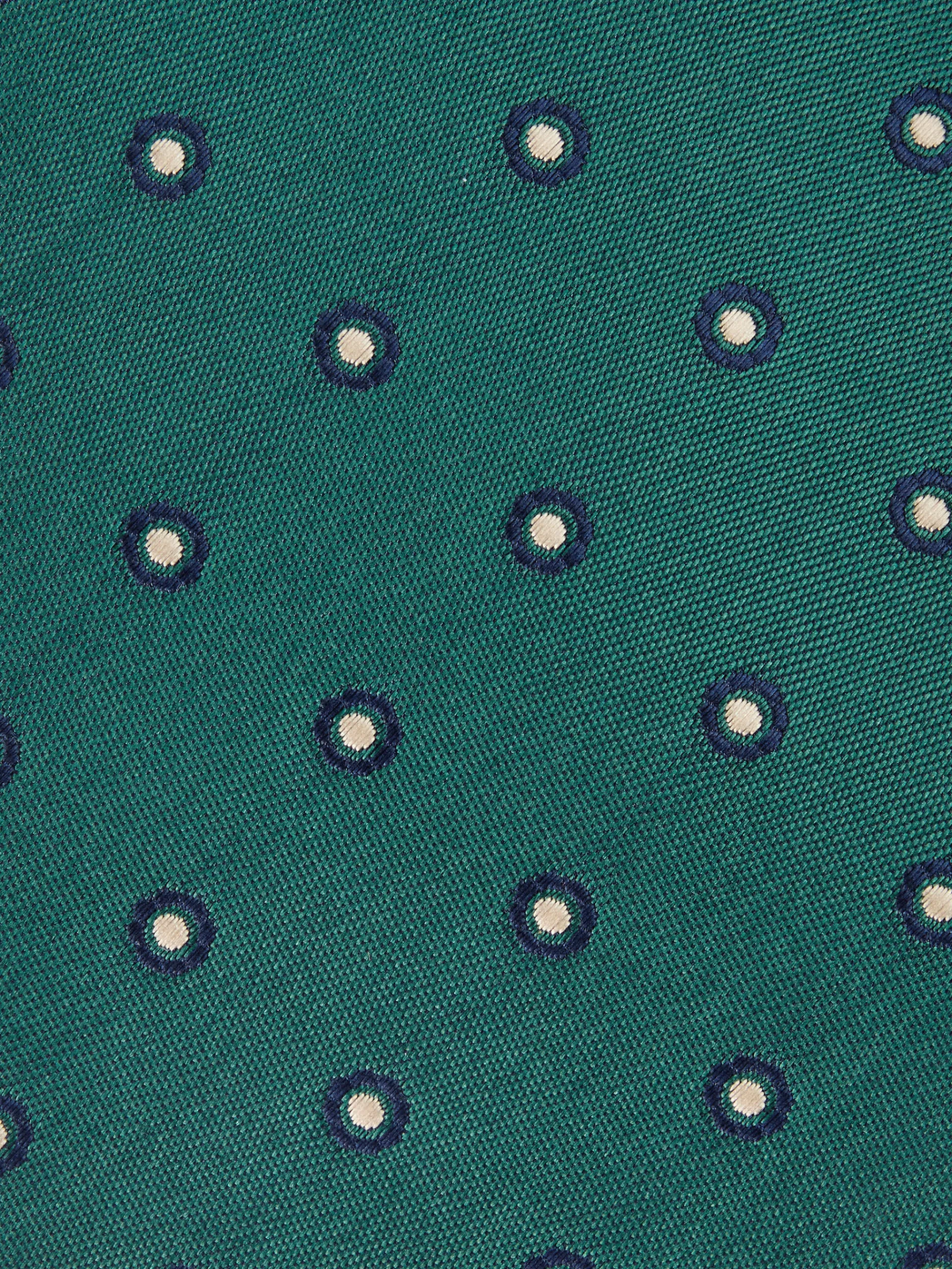 Corbata estilo jacquard con diseño estampado a contraste confeccionada en 100% poliéster. Cuenta con el logo de la marca grabado en el interior.