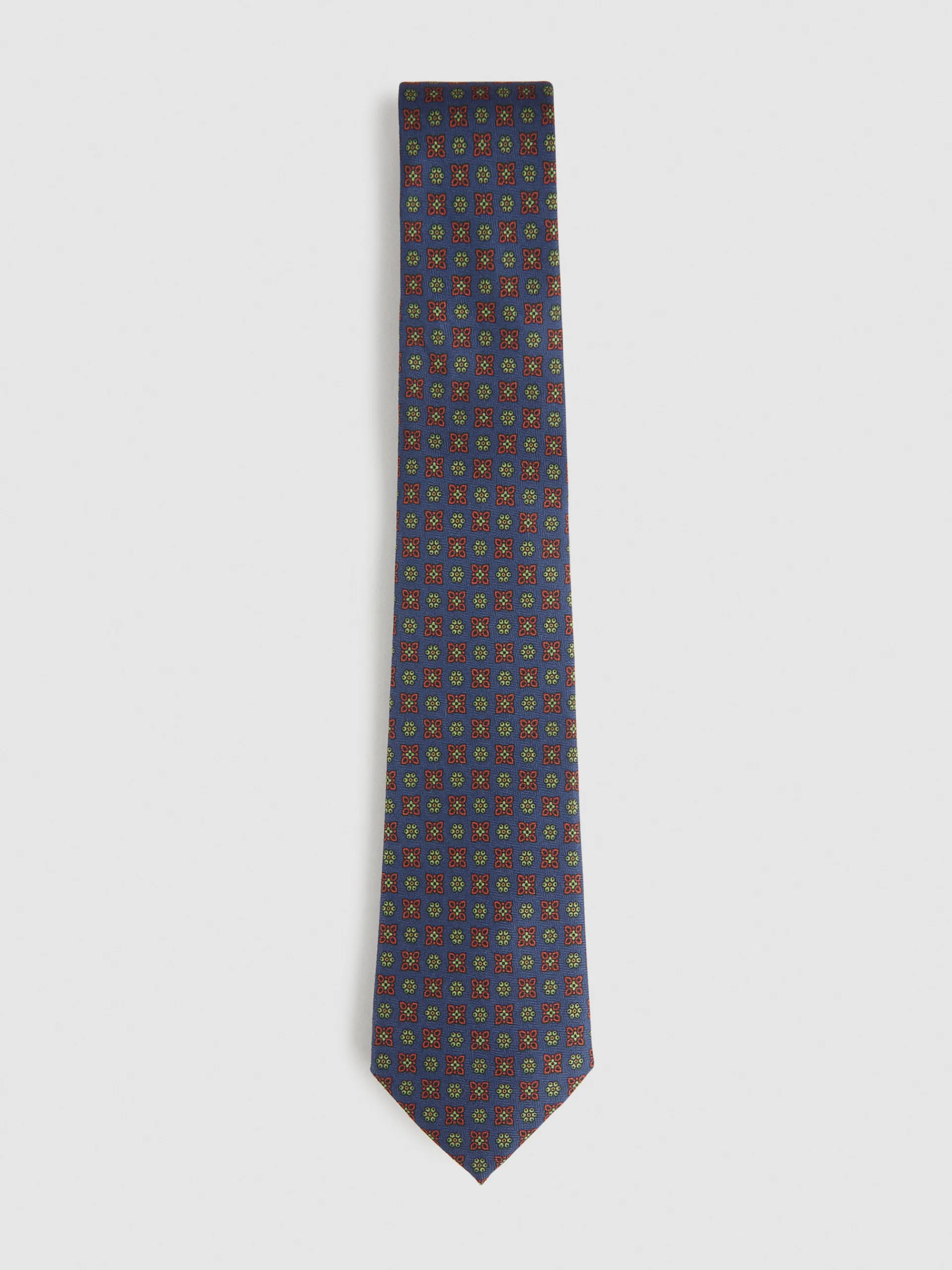 Corbata con diseño estampado personalizado confeccionada en 100% poliéster. Cuenta con el logo de la marca grabado en el interior.