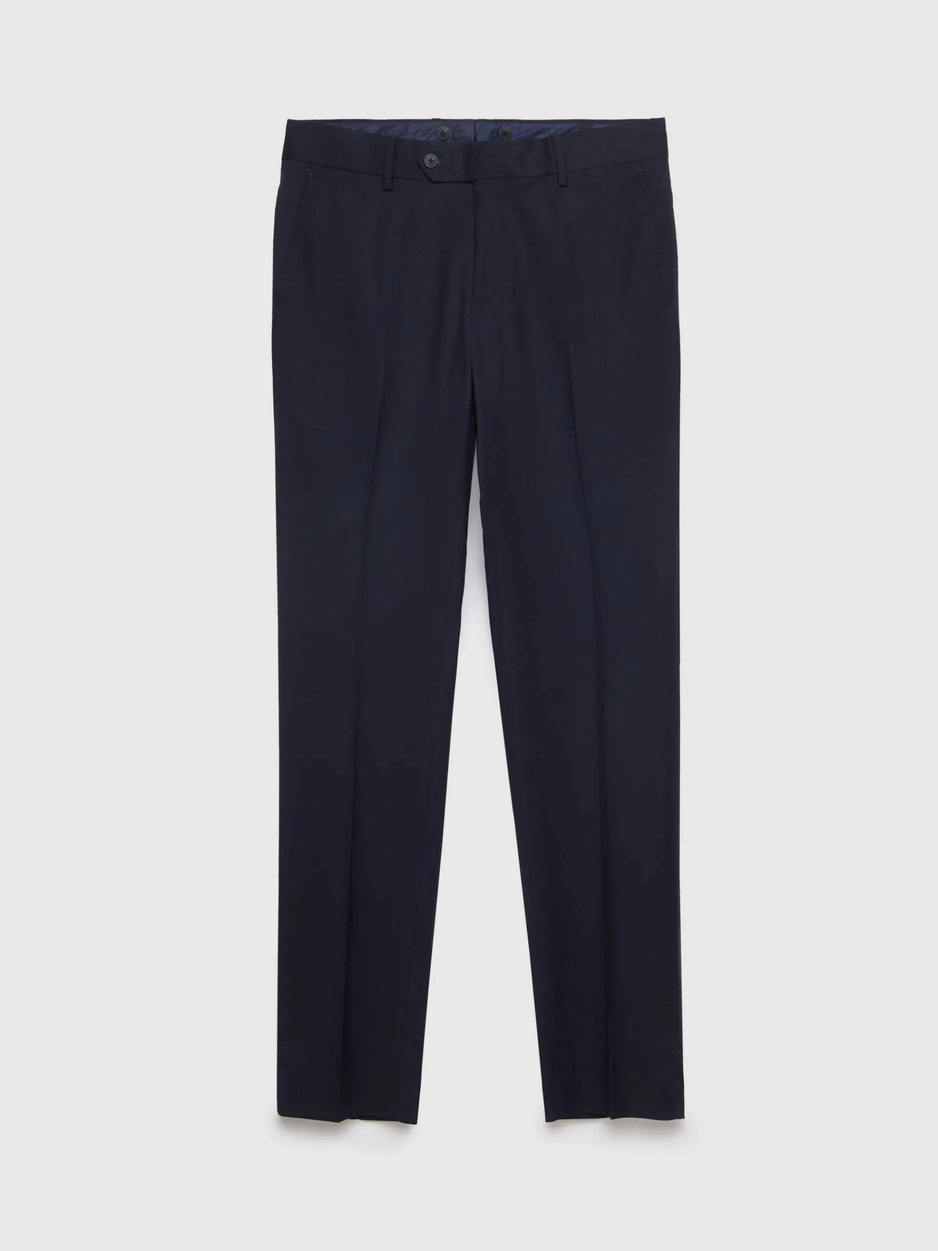Pantalón de traje que cuenta con cierre frontal de cremallera y botones, dos bolsillos abiertos en la parte delantera y dos bolsillos traseros con cierre mediante botón. Forrado en su interior.