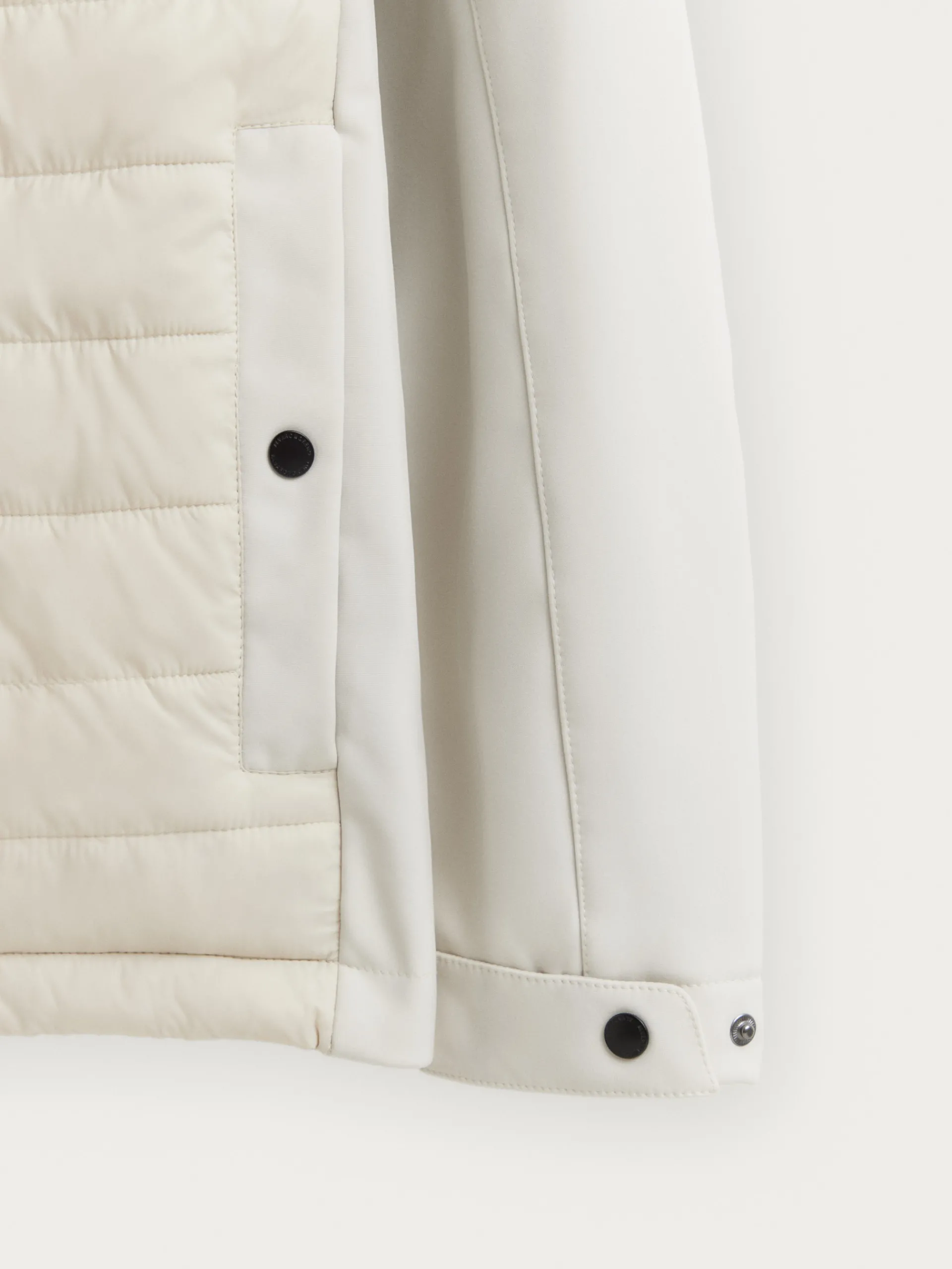 Cazadora acolchada con gorro desmontable, cierre central mediante doble cremallera, manga larga con puños ajustables y dos bolsillos a la altura del pecho y dos bolsillos en la cintura. Detalle personalizado en una de las mangas. Cremalleras termoselladas. Interior con bolsillo y corte regular fit.