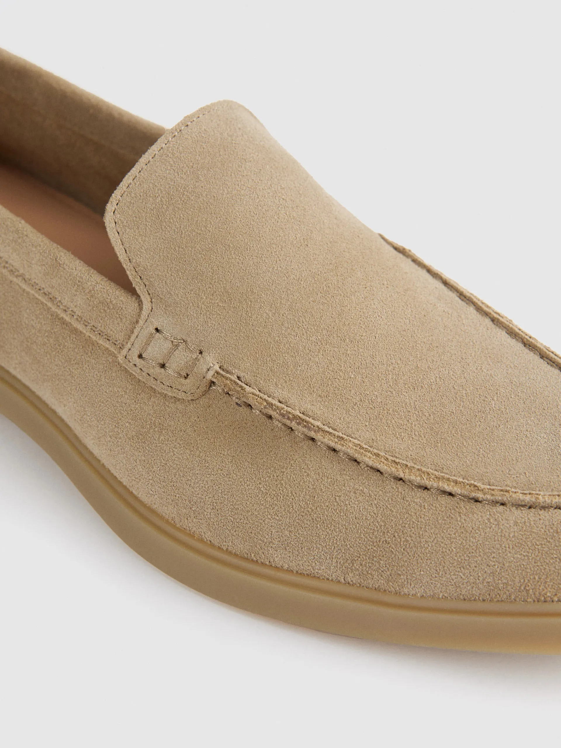 Mocasines de pala lisa confeccionados en piel de serraje. Puntera redonda y suela de goma antideslizante.