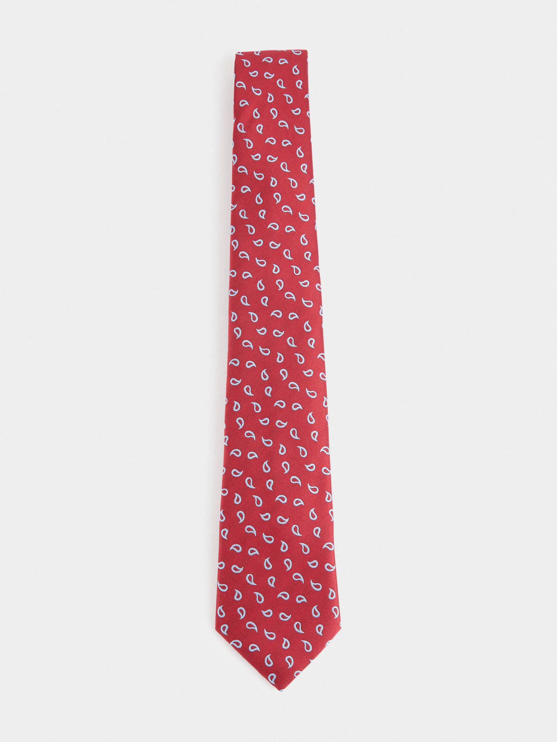 Corbata estilo jacquard con diseño estampado a contraste confeccionada en 100% poliéster. Cuenta con el logo de la marca grabado en el interior.