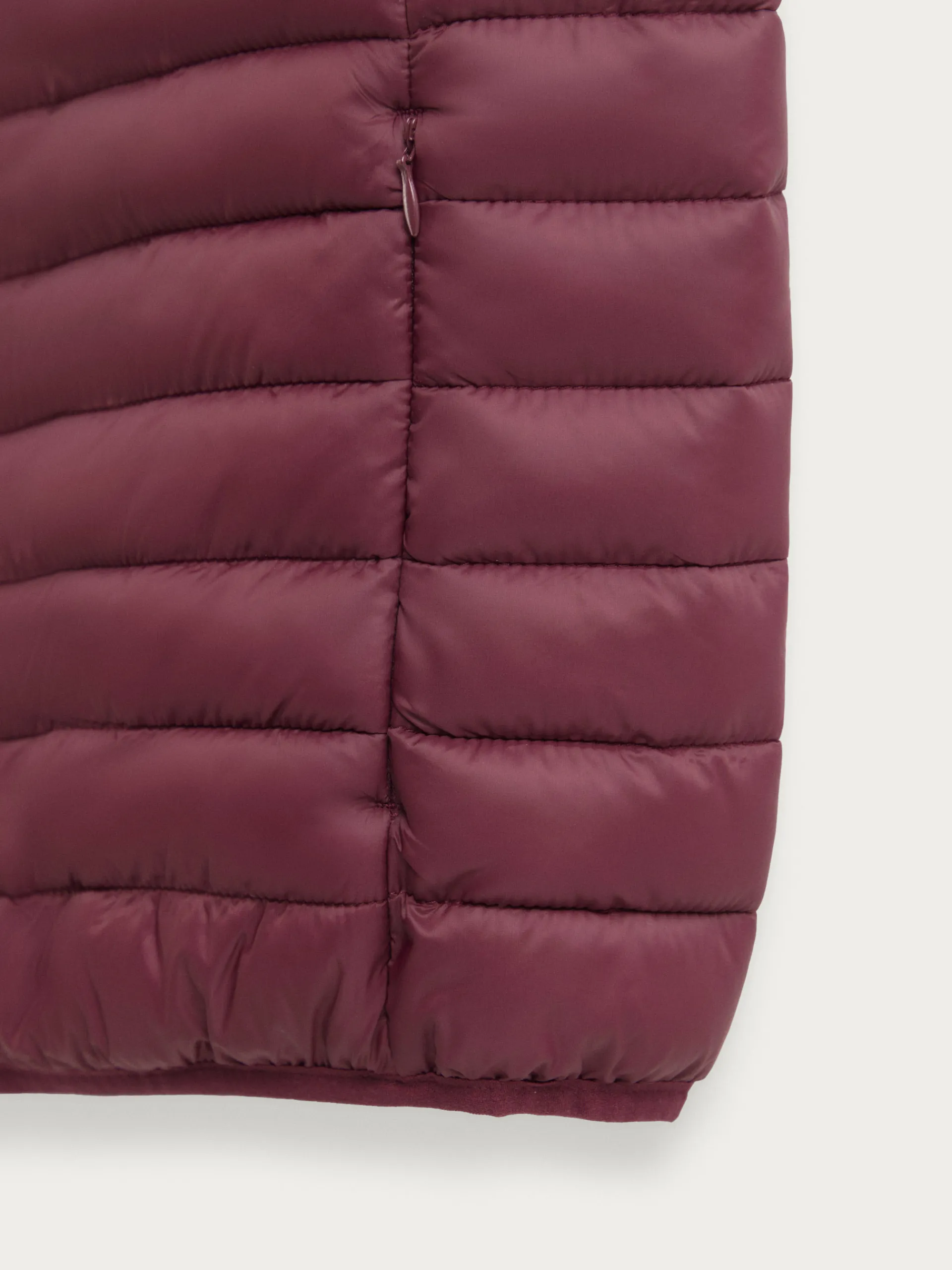 Chaleco acolchado con cuello subido y cierre central mediante cremallera, dos bolsillos a la altura de la cintura y logo de la marca grabado en el pecho. Elástico en la sisa y cintura. Forro interior a contraste con bolsillos.