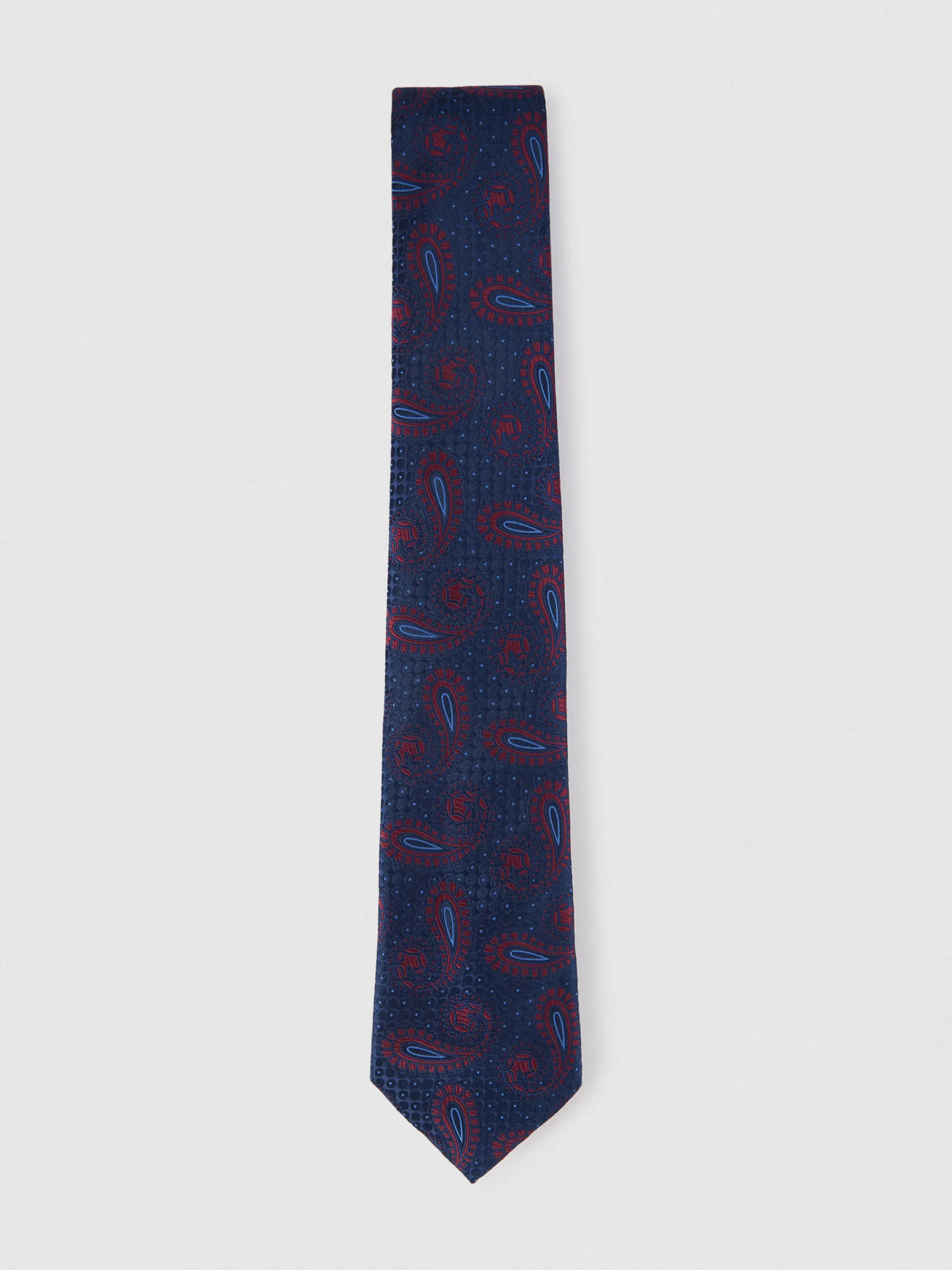 Corbata estilo jacquard con diseño estampado a contraste confeccionada en 100% poliéster. Cuenta con el logo de la marca grabado en el interior.