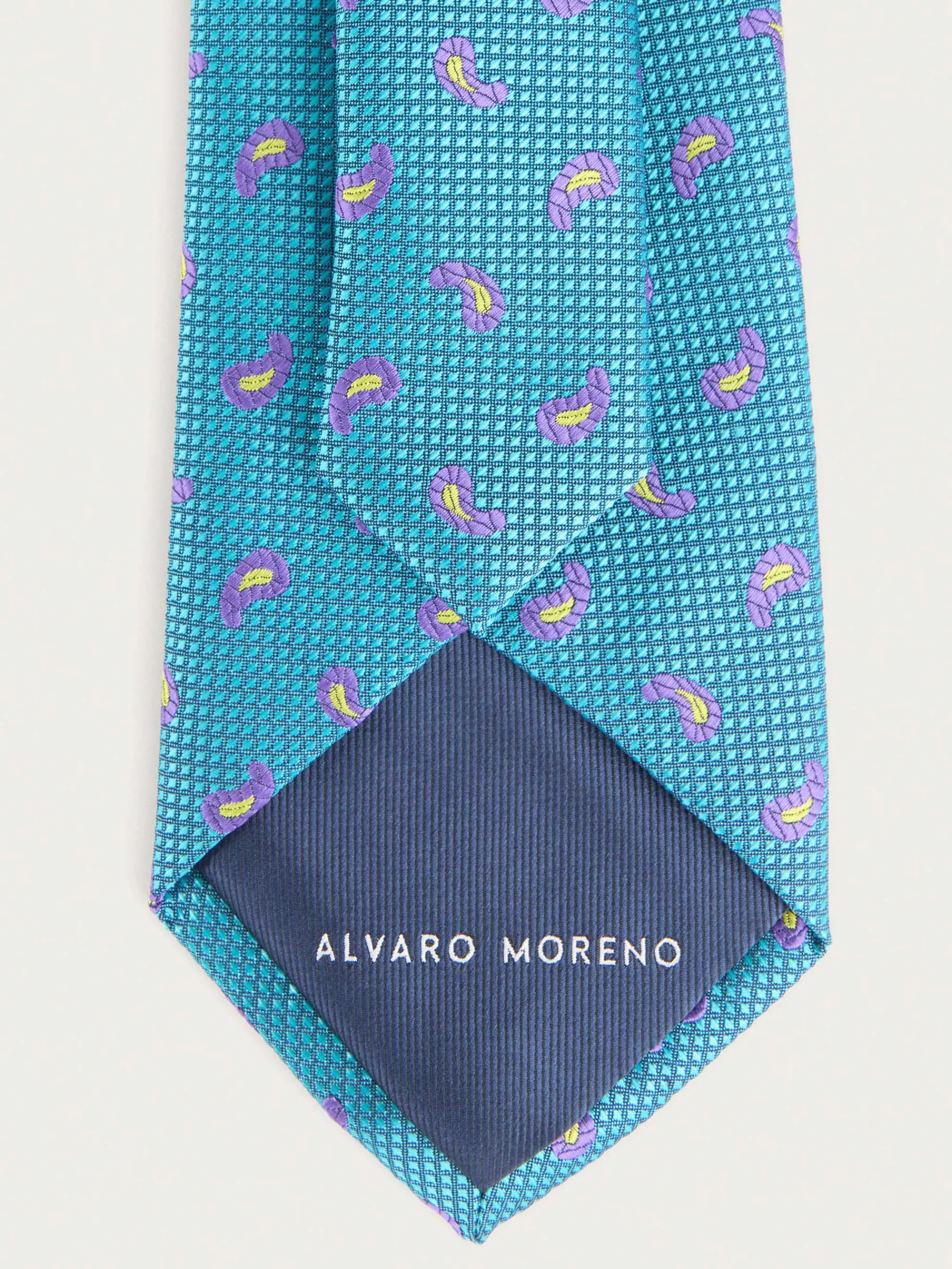 Corbata estilo jacquard con diseño estampado a contraste confeccionada en 100% poliéster. Cuenta con el logo de la marca grabado en el interior.