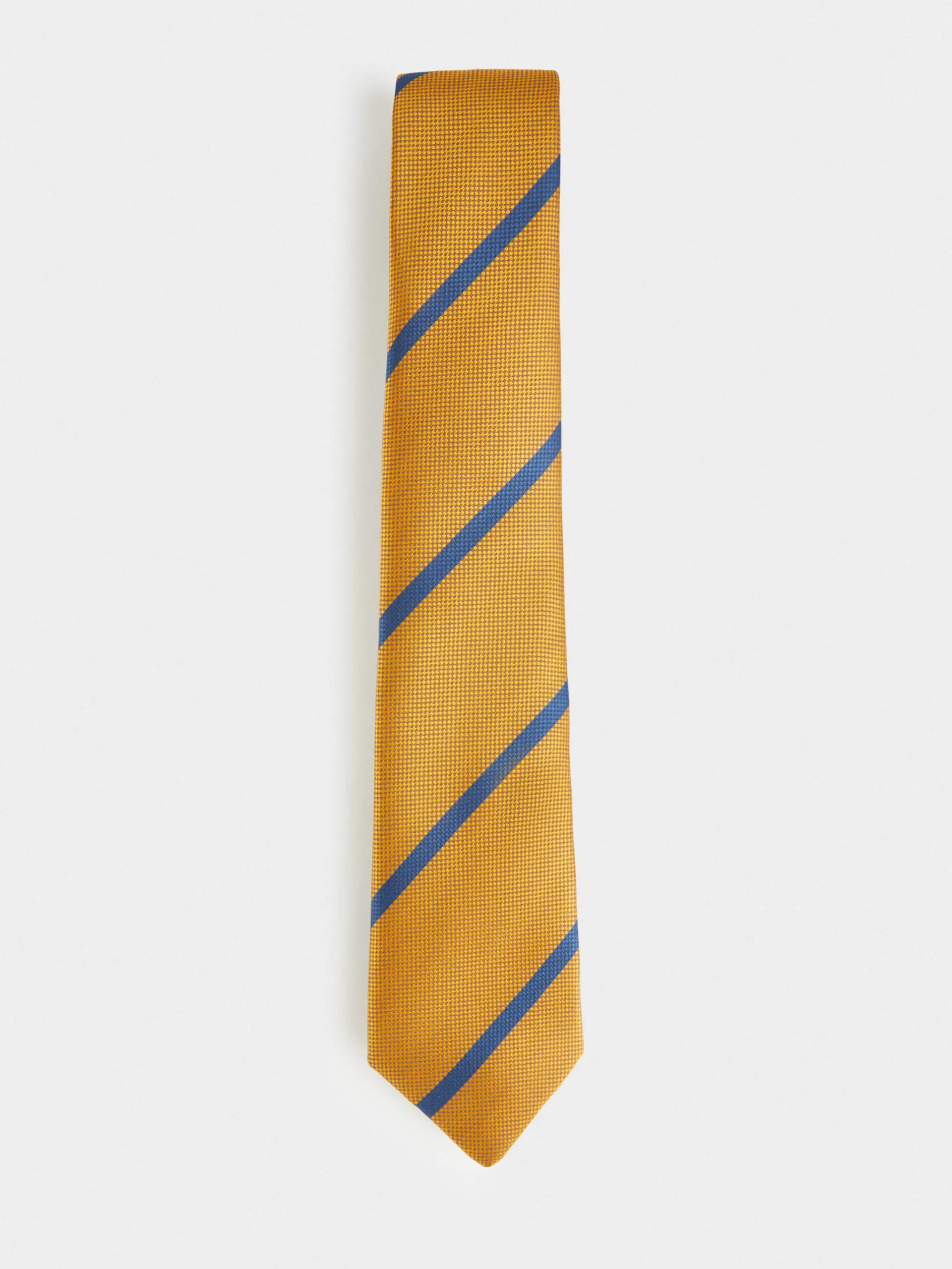 Corbata estilo jacquard con diseño estampado a contraste confeccionada en 100% poliéster. Cuenta con el logo de la marca grabado en el interior.