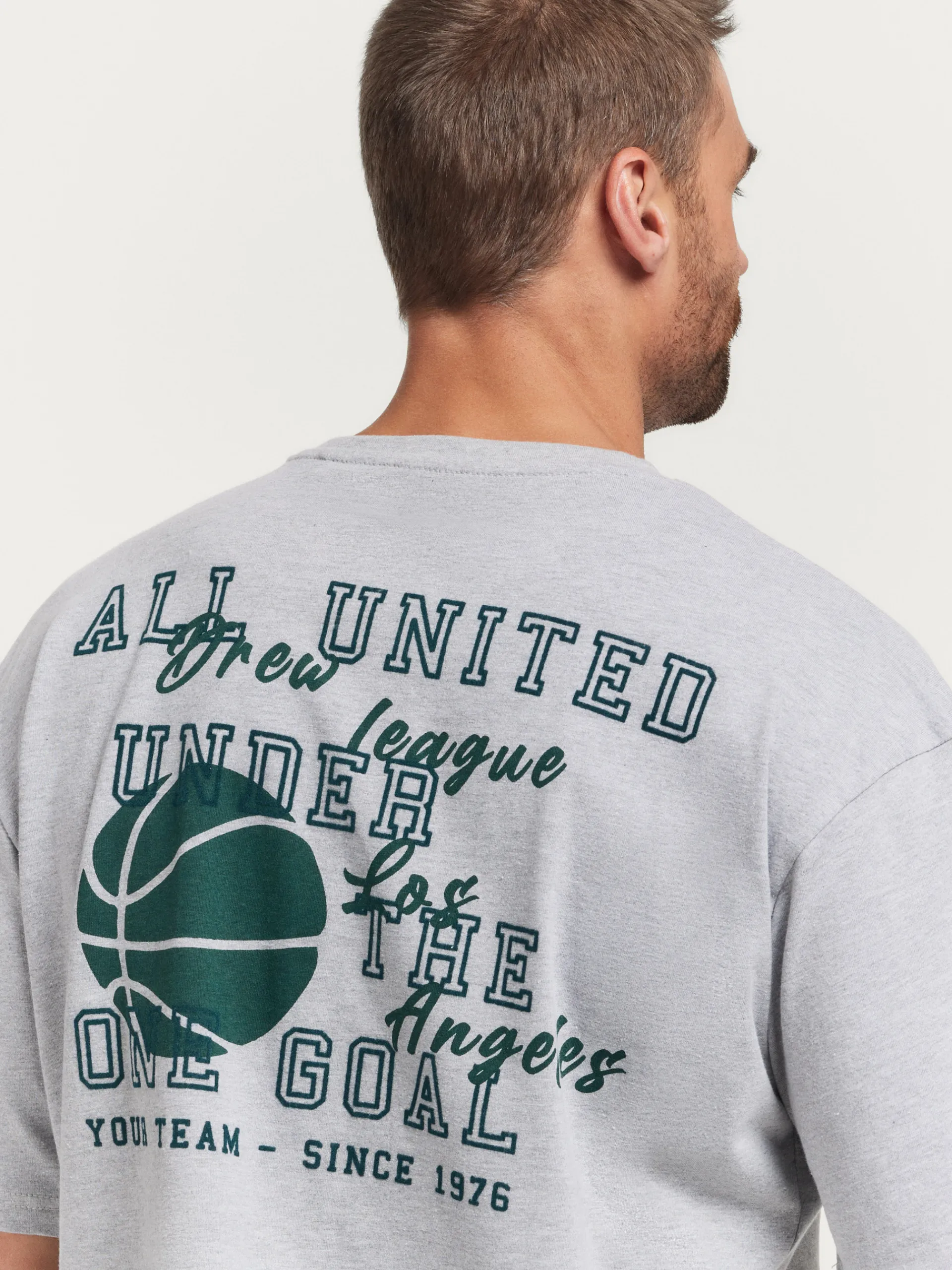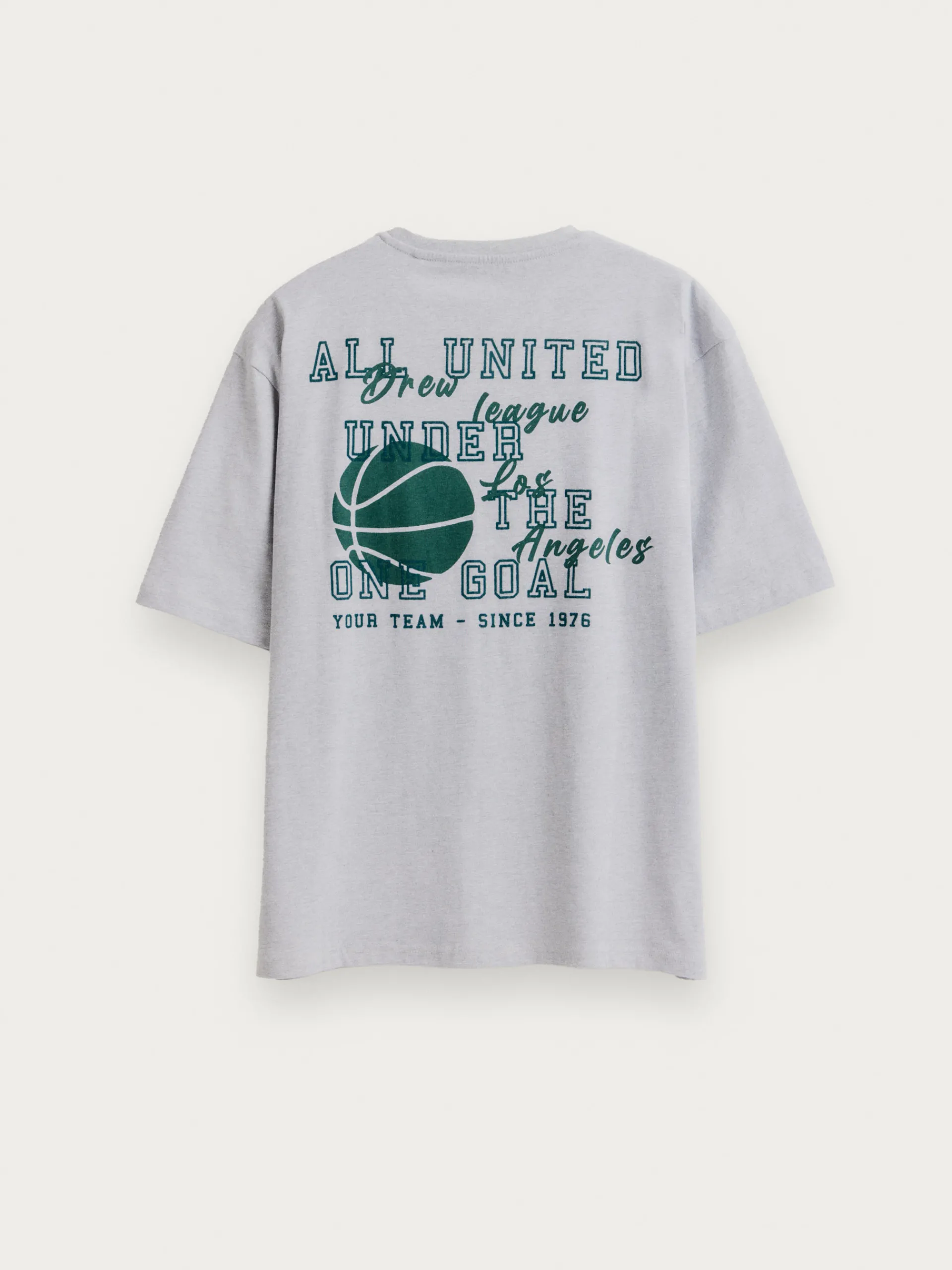 Camiseta de corte relaxed fit aportando un corte más relajado. Cuenta con estampado personalizado en el frontal y en la parte trasera, cuello redondo y manga corta ligeramente más anchas y largas.