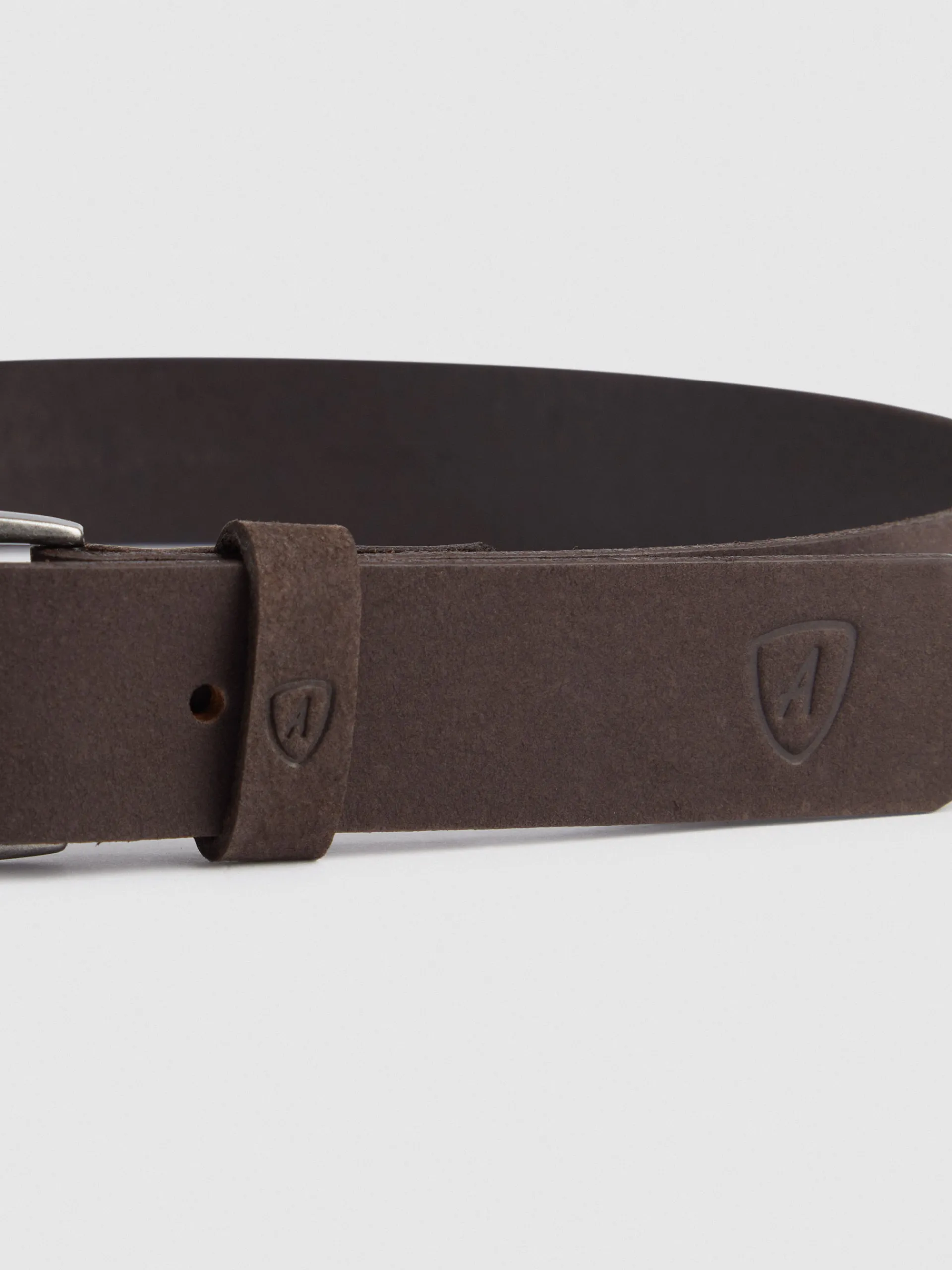 Cinturón con cierre central mediante hebilla metálica, pasador al tono y logo de la marca grabado al tono.