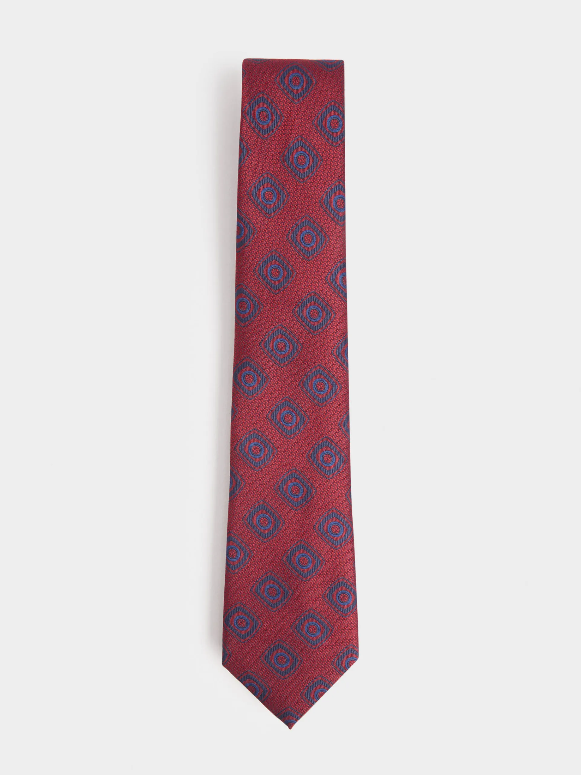 Corbata estilo jacquard con diseño estampado a contraste confeccionada en 100% poliéster. Cuenta con el logo de la marca grabado en el interior.