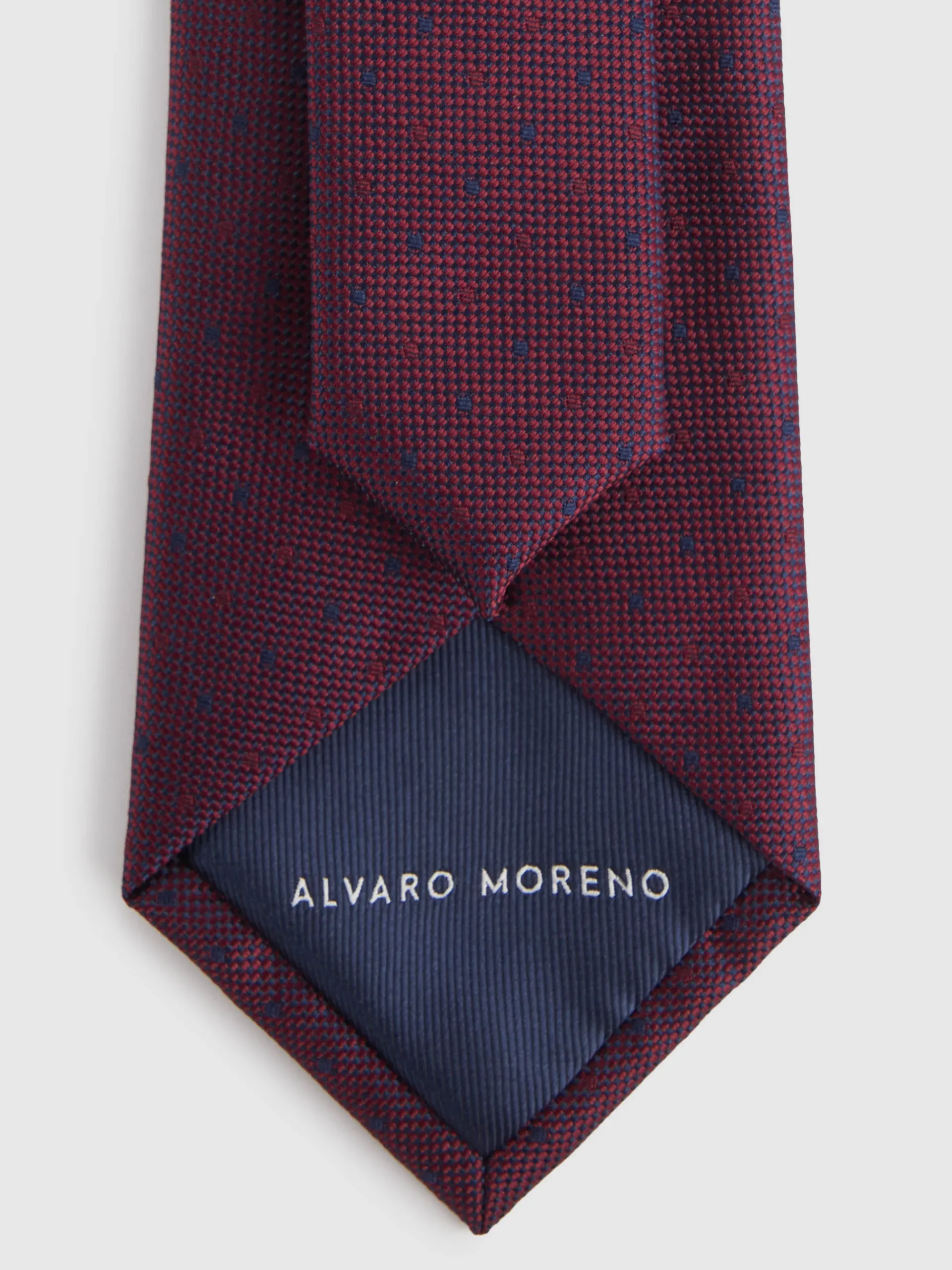 Corbata estilo jacquard con diseño estampado a contraste confeccionada en 100% poliéster. Cuenta con el logo de la marca grabado en el interior.