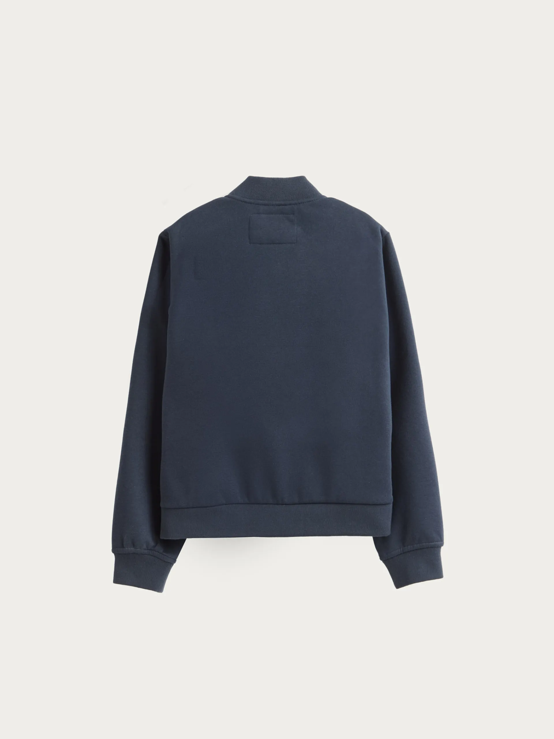 Cazadora estilo bomber con cuello y mangas en tejido de punto. Cuenta en su parte delantera con cierre central mediante cremallera, dos bolsillos y parche con el logo de la marca grabado en el pecho.