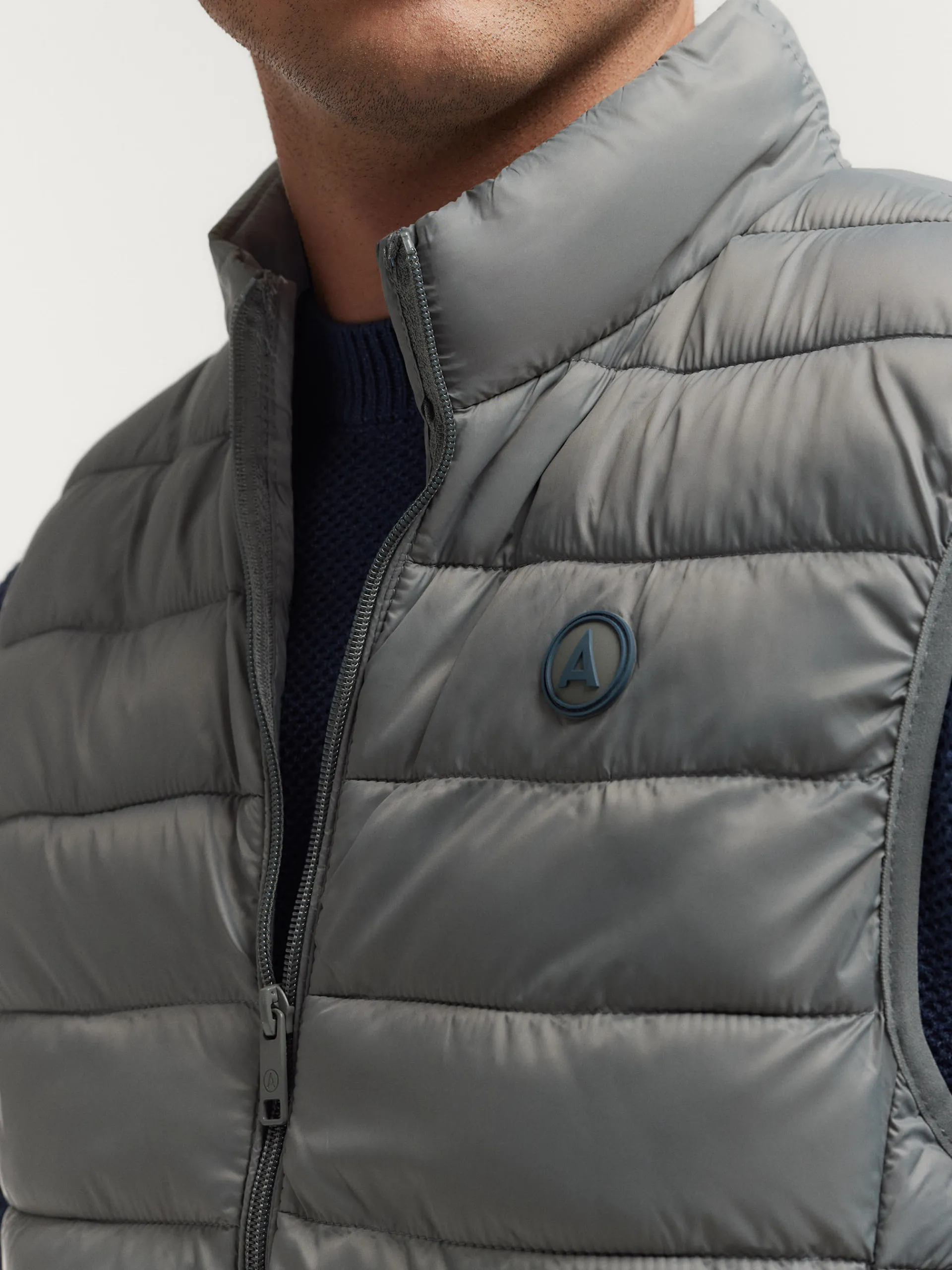 Chaleco acolchado con cuello subido. Dos bolsillo a la altura de la cintura, logo grabado en el frontal y sisa y cintura en punto elástico. Forro interior a contraste con bolsillos.