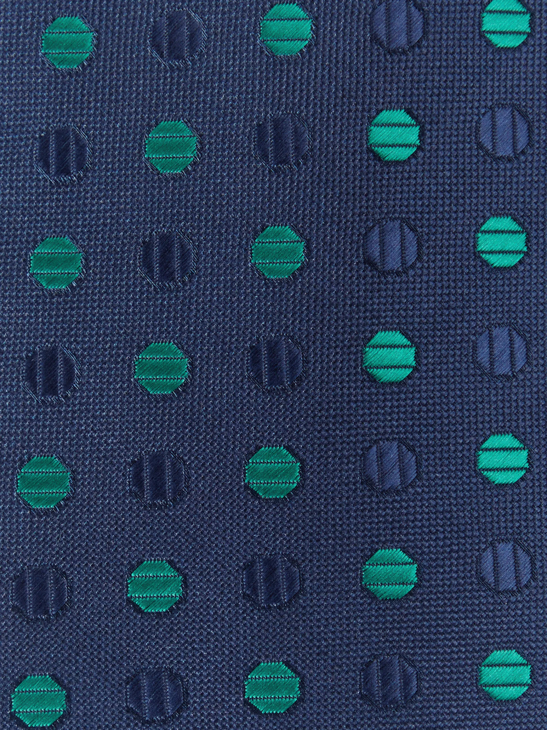Corbata estilo jacquard con diseño estampado a contraste confeccionada en 100% poliéster. Cuenta con el logo de la marca grabado en el interior.