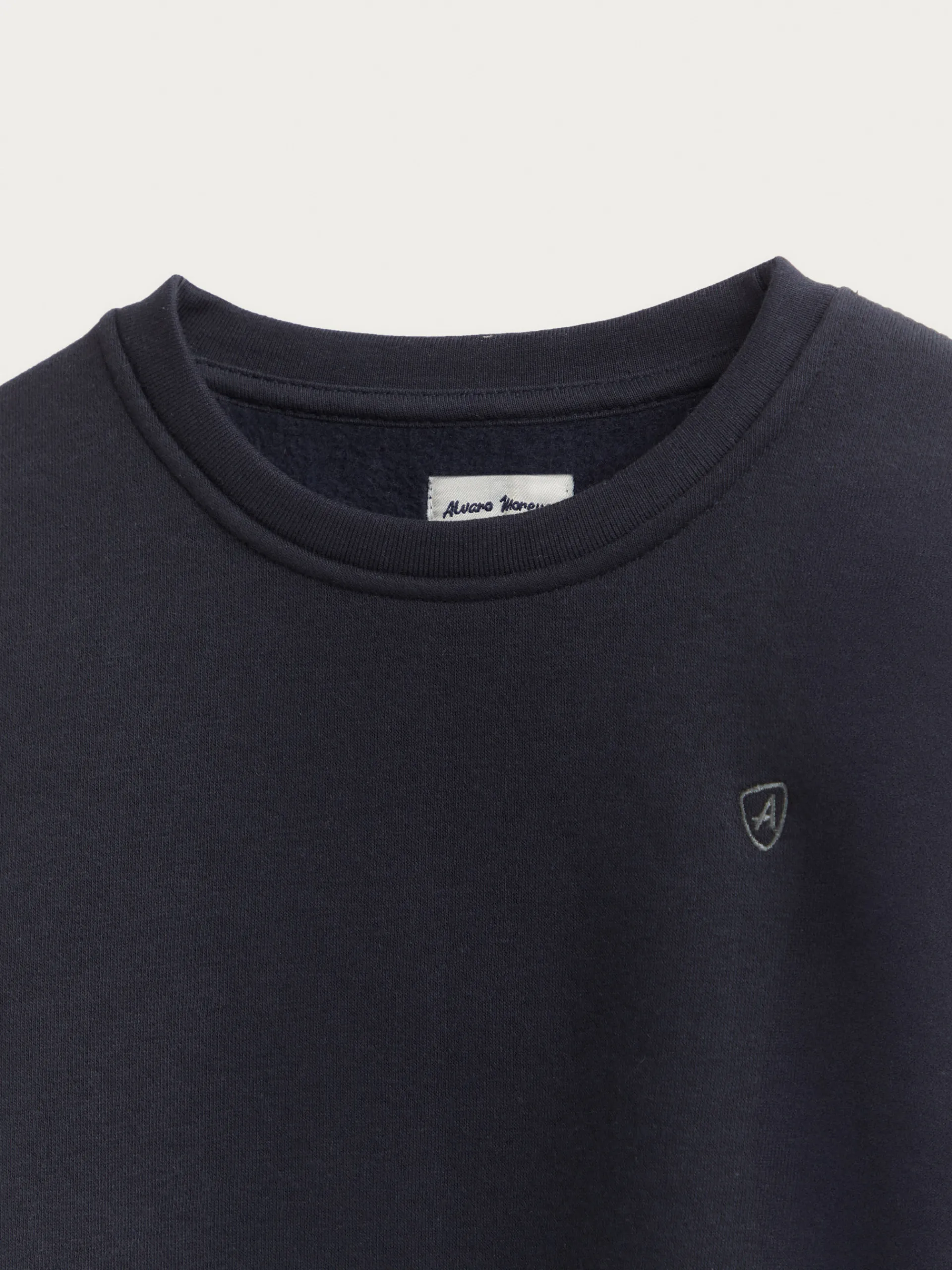 Sudadera lisa con cuello redondo, manga larga y logo de la marca grabado en el frontal al tono. Puños y bajo en acabado elástico. Etiqueta canvas en el lateral. Corte regular fit.