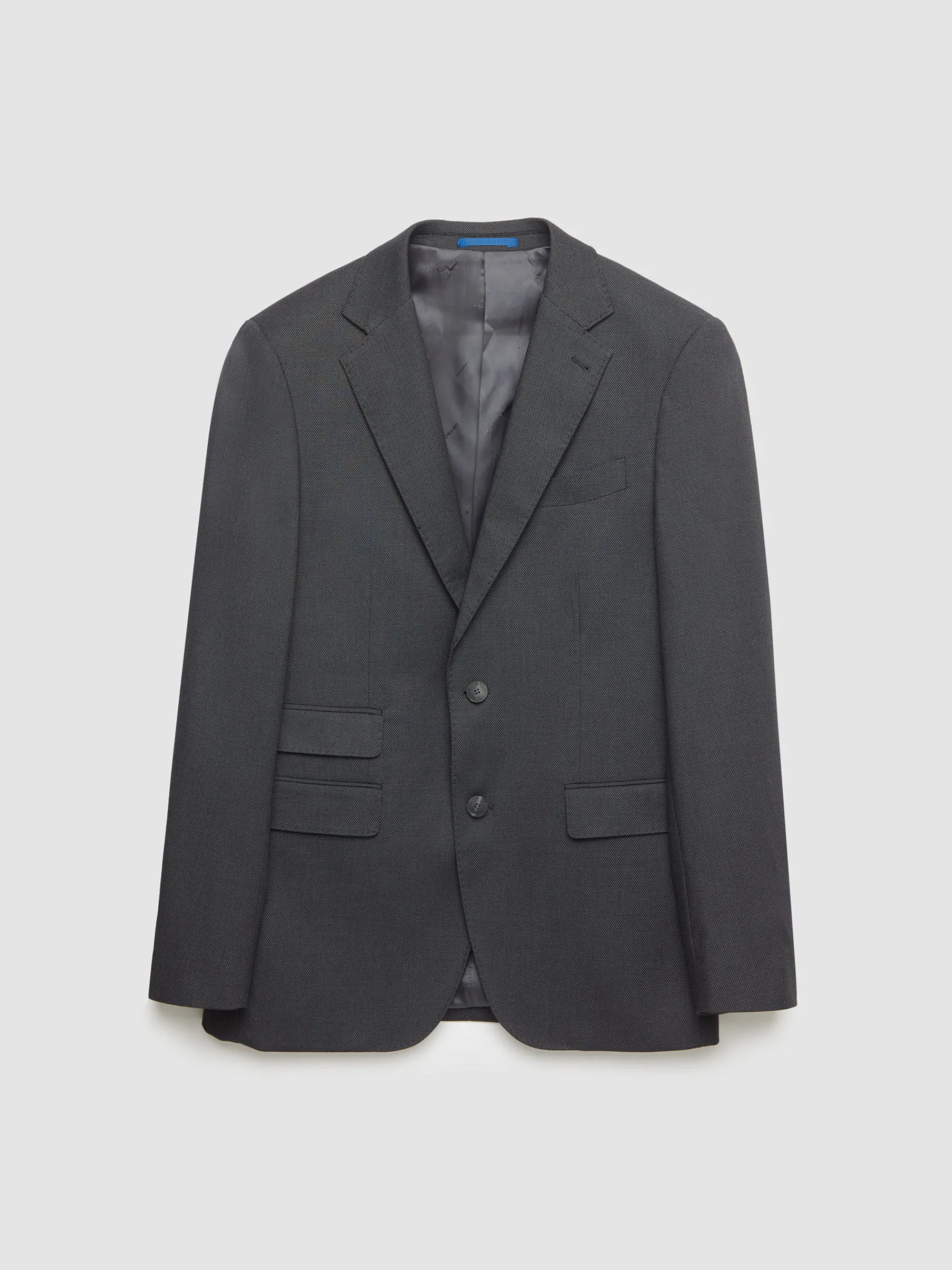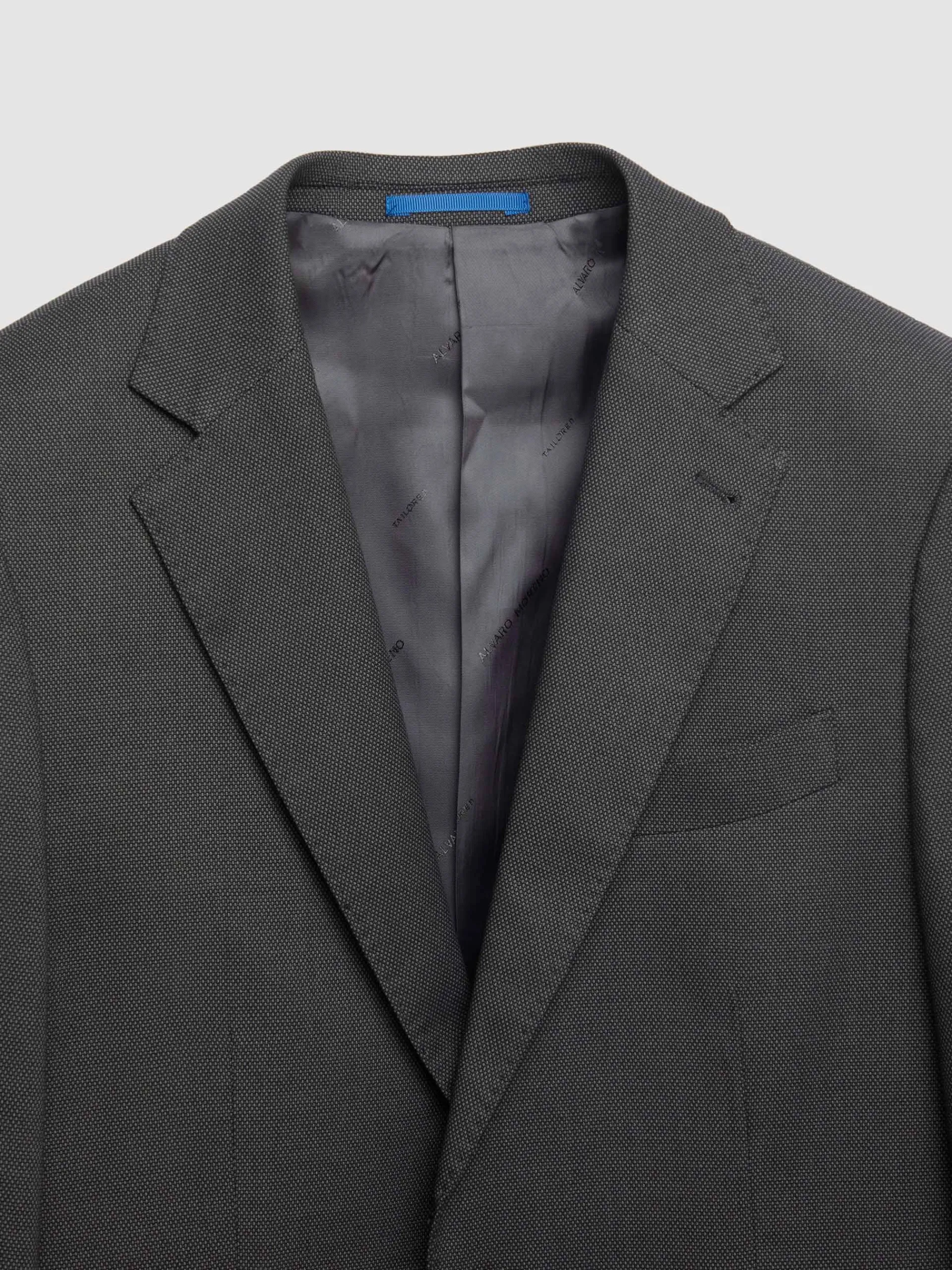 Americana con cuello y solapa en tejido de ojo de perdiz. Cierre central mediante botones, bolsillo de ojal en el pecho, tres bolsillos de solapa en la cintura y puños con botones decorativos. Interior forrado y con bolsillos.