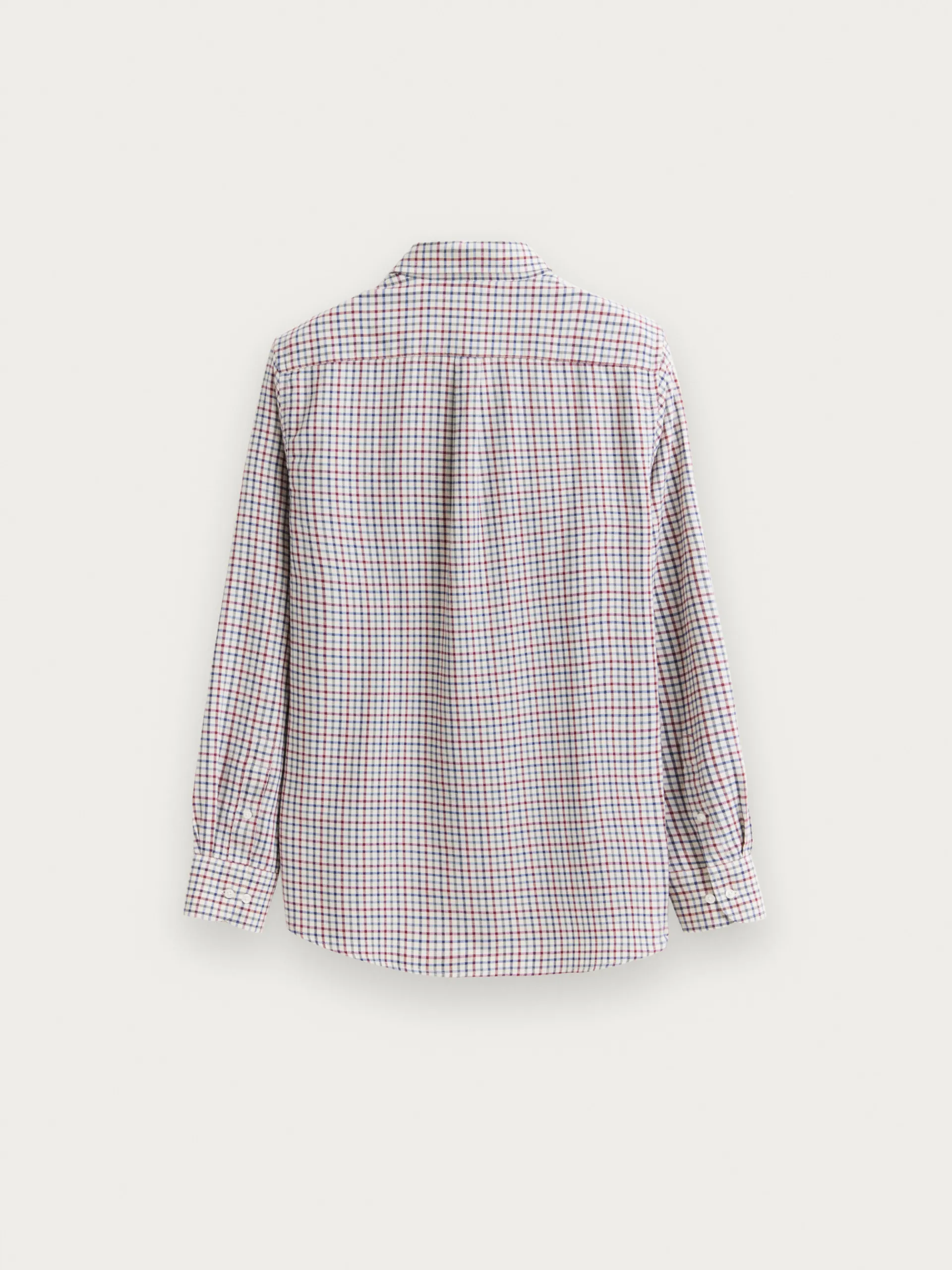 Camisa a cuadros confeccionada en tejido de franela. Cuenta con cuello clásico de botón, manga larga con puños simples y logo de la marca grabado en el frontal. Corte regular fit.