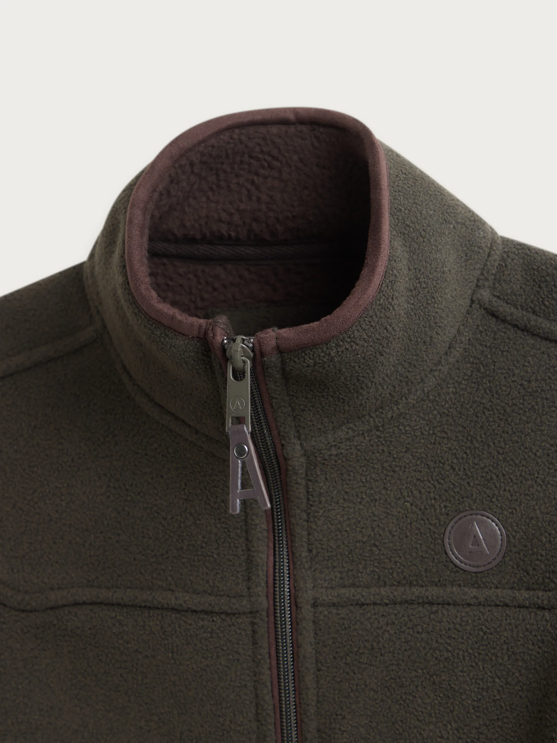 Chaleco confeccionado en tejido avivado en antelina en su exterior y forrado en su interior en borreguillo. Cuenta con cierre central mediante cremallera personalizada, dos bolsillos en su exterior y logo grabado en su frontal. Corte regular fit.