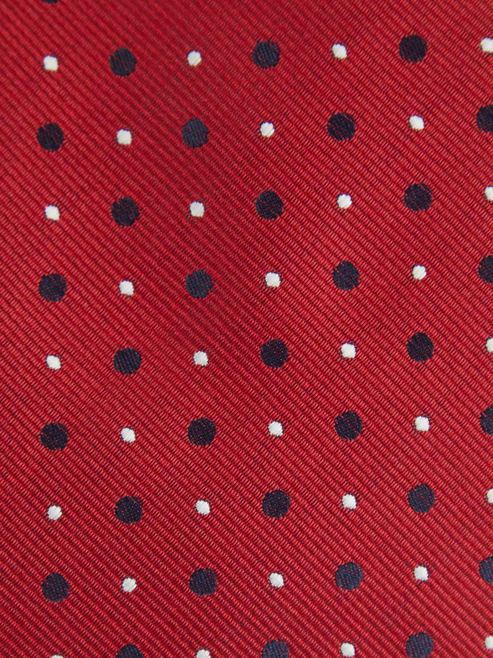 Corbata estilo jacquard con diseño estampado a contraste confeccionada en 100% poliéster. Cuenta con el logo de la marca grabado en el interior.
