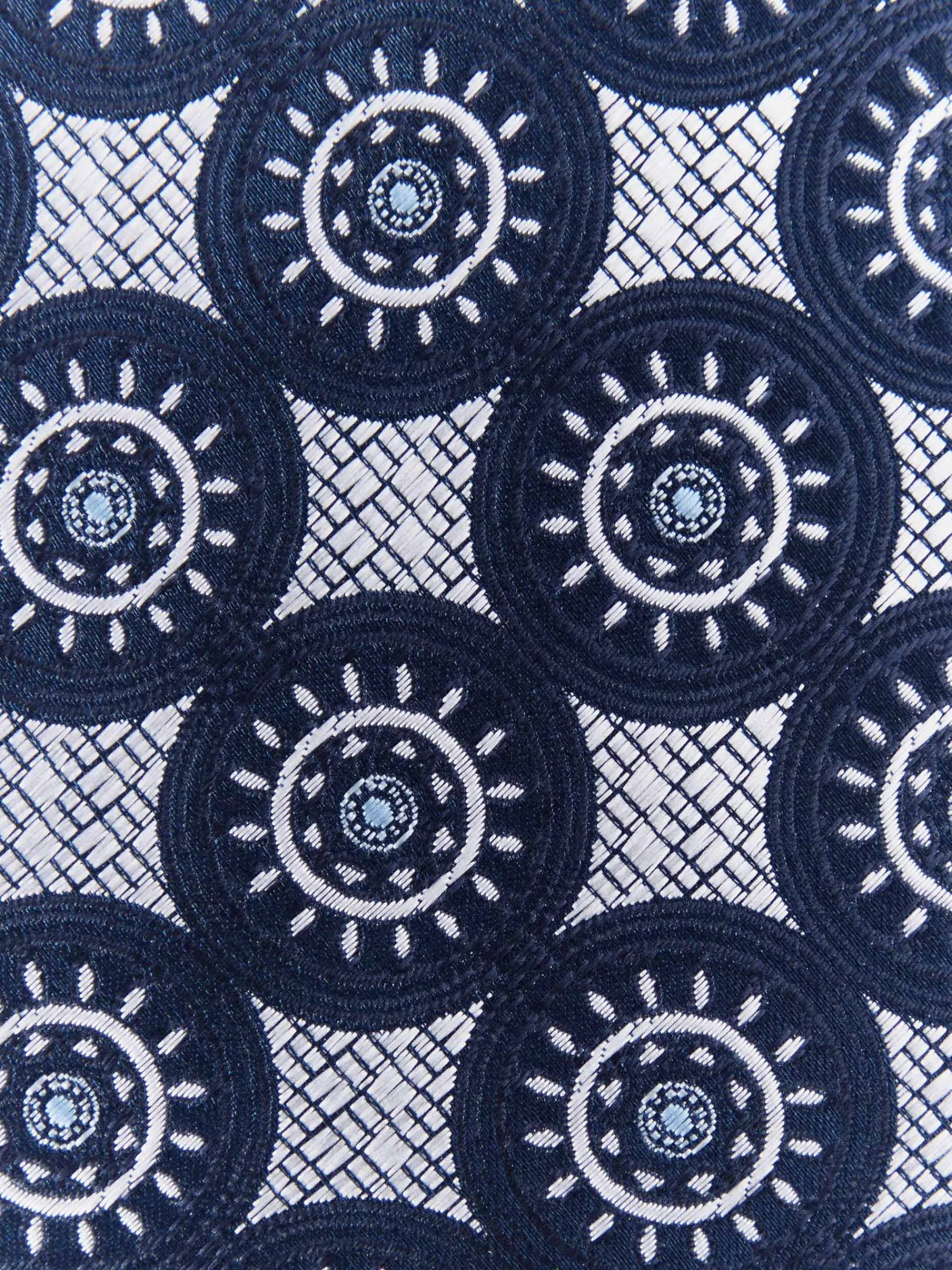 Corbata estilo jacquard con diseño estampado a contraste confeccionada en 100% poliéster. Cuenta con el logo de la marca grabado en el interior.