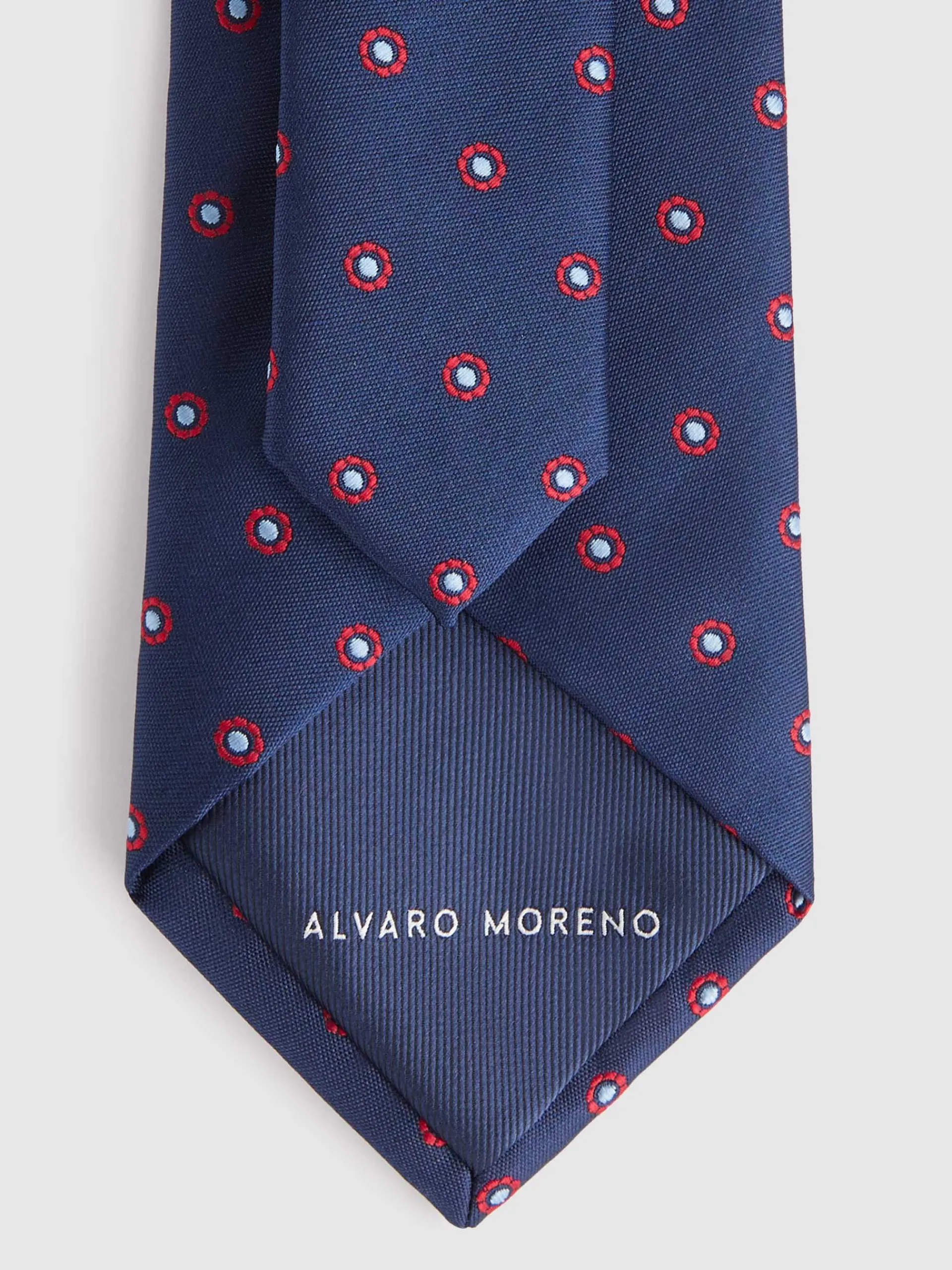 Corbata estilo jacquard con diseño estampado a contraste confeccionada en 100% poliéster. Cuenta con el logo de la marca grabado en el interior.