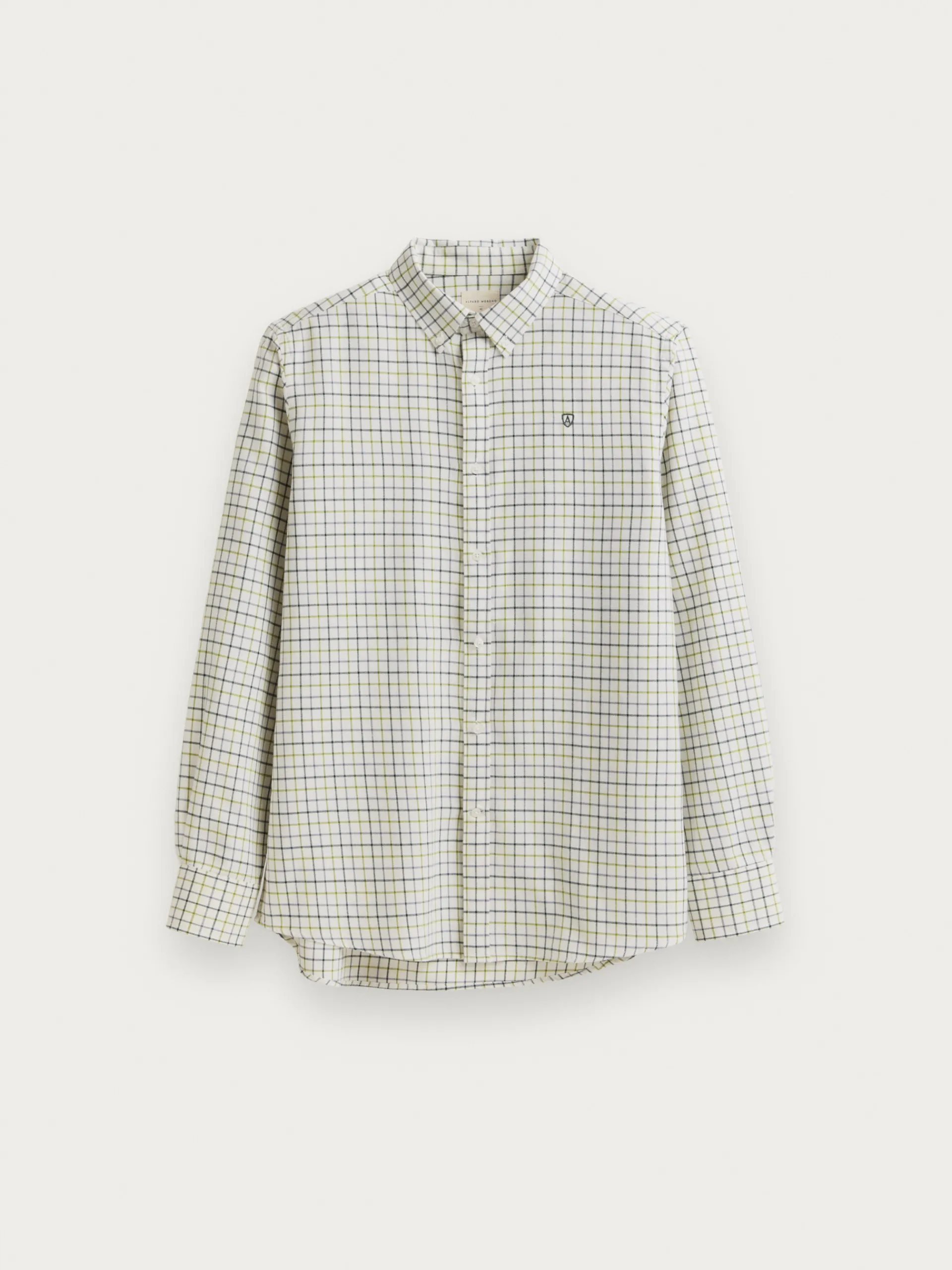 Camisa a cuadros confeccionada en tejido de franela. Cuenta con cuello clásico de botón, manga larga con puños simples y logo de la marca grabado en el frontal. Corte regular fit.