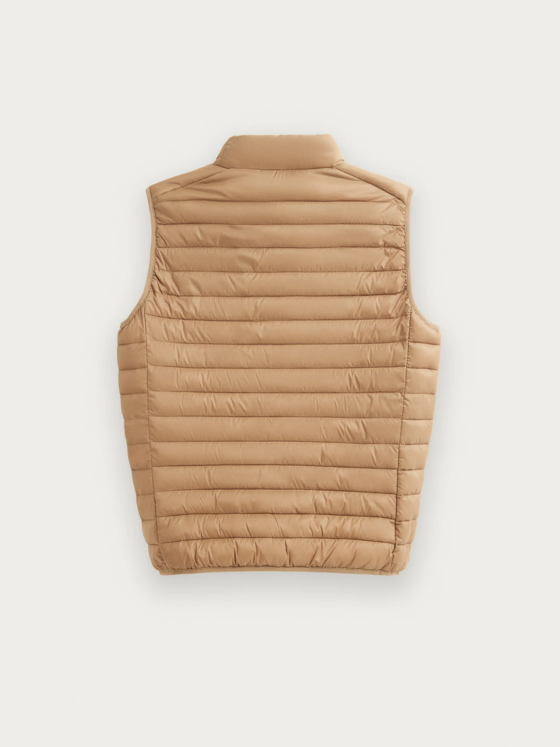 Chaleco acolchado con cuello subido y cierre central mediante cremallera, dos bolsillos a la altura de la cintura y logo de la marca grabado en el pecho. Elástico en la sisa y cintura. Forro interior a contraste con bolsillos.