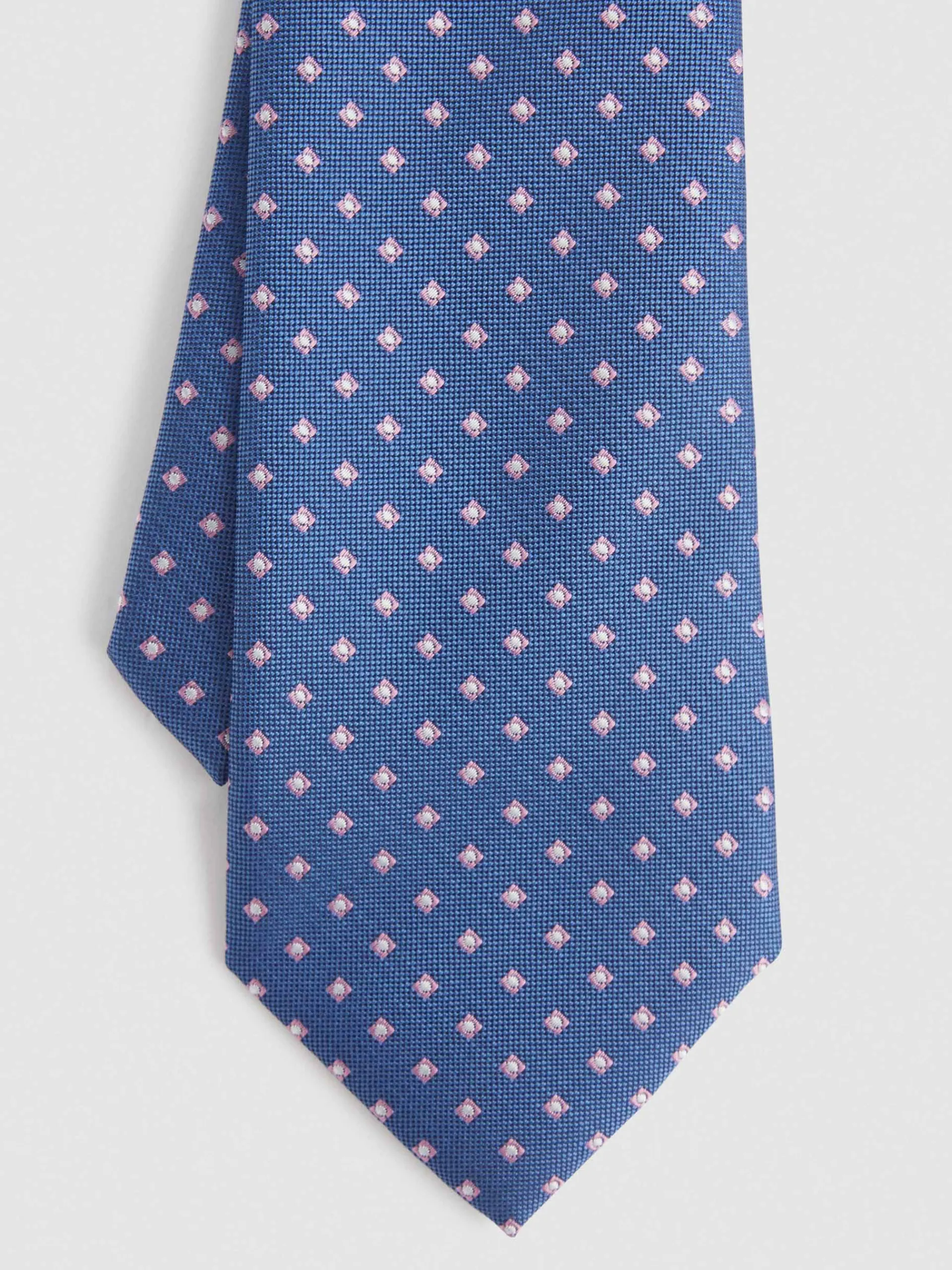 Corbata estilo jacquard con diseño estampado a contraste confeccionada en 100% poliéster. Cuenta con el logo de la marca grabado en el interior.