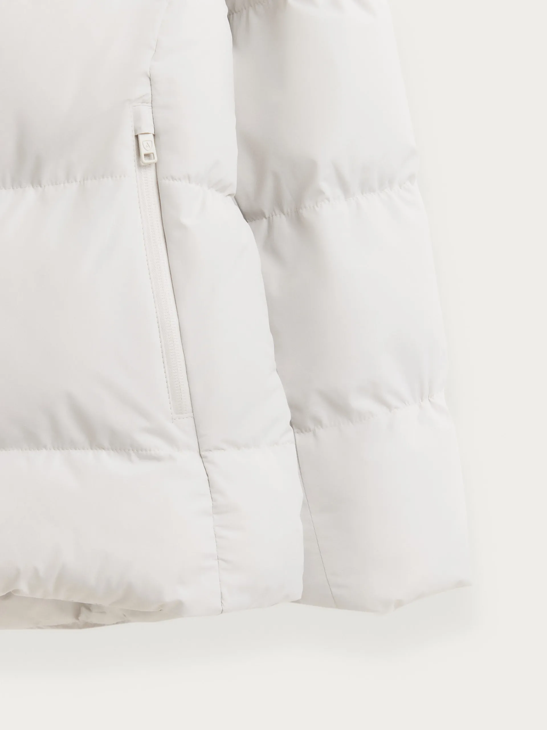 Parka acolchada con cuello subido y gorro ajustable. Cierre central mediante cremallera, dos bolsillos en la cintura con cierre de cremallera y manga larga con doble puño en punto elástico. Detalle personalizado engomado en una de sus mangas. Interior con bolsillo y forrado. Cremalleras termoselladas.