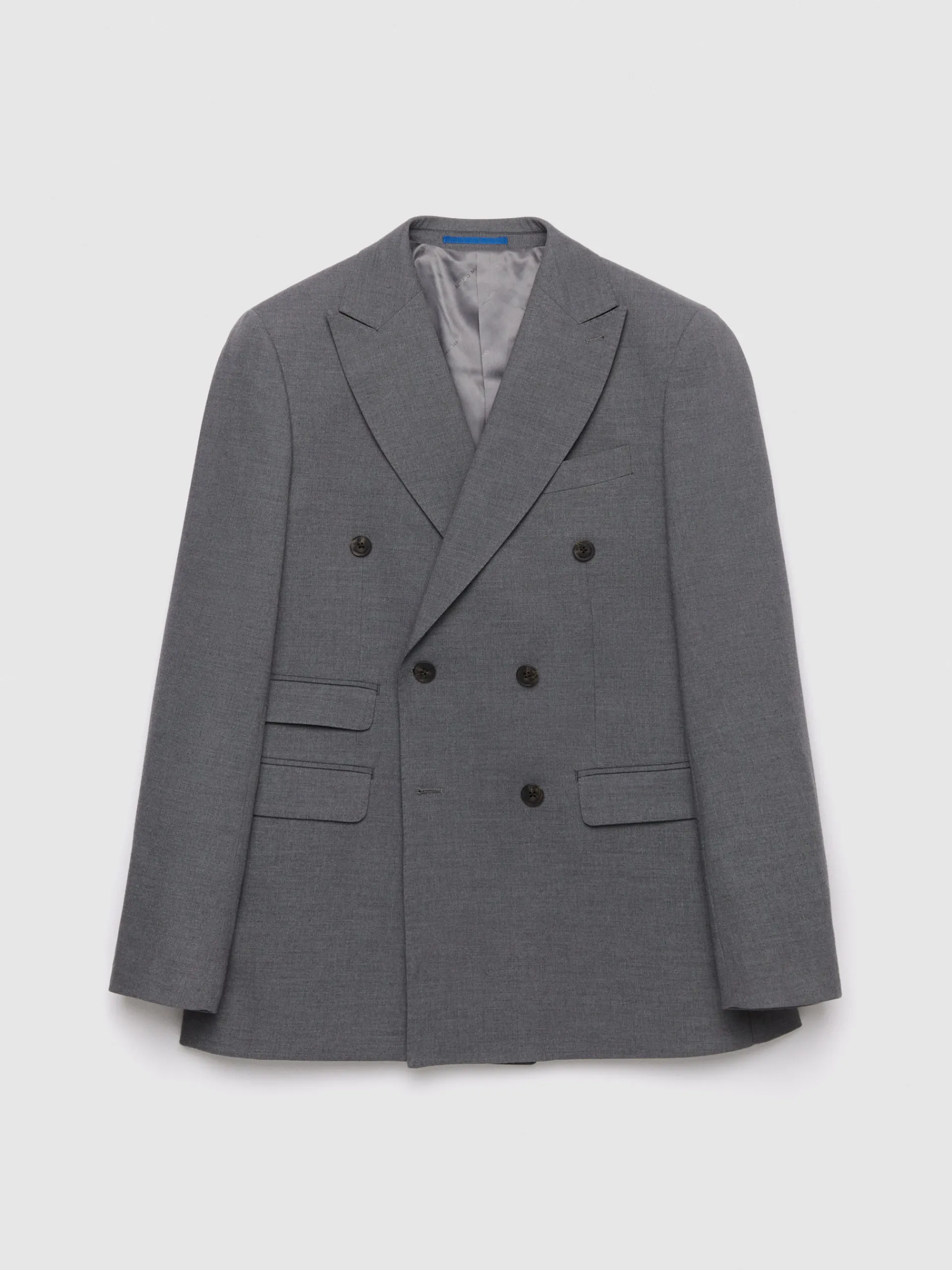 Americana de corte regular fit confeccionada en tejido liso con cuello y solapa ligeramente más anchos. Cierre central cruzado mediante cuatro botones. Bolsillo en el pecho, tres bolsillos de solapa en la cintura y puños con botones en su terminación. Pinzas en el delantero. Interior forrado y con bolsillos.