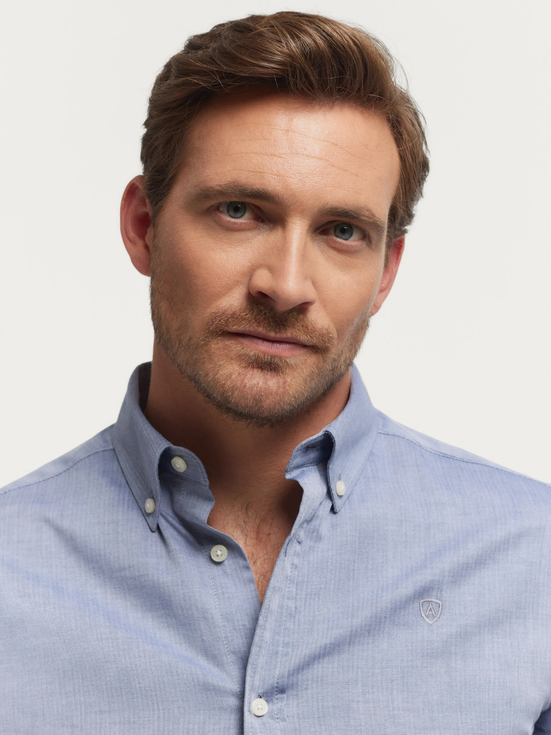 Camisa confeccionada en algodón con tejido de espiga. Cuenta con cuello clásico de botón, manga larga con puños simples y logo de la marca grabado en el frontal al tono. Corte regular fit.