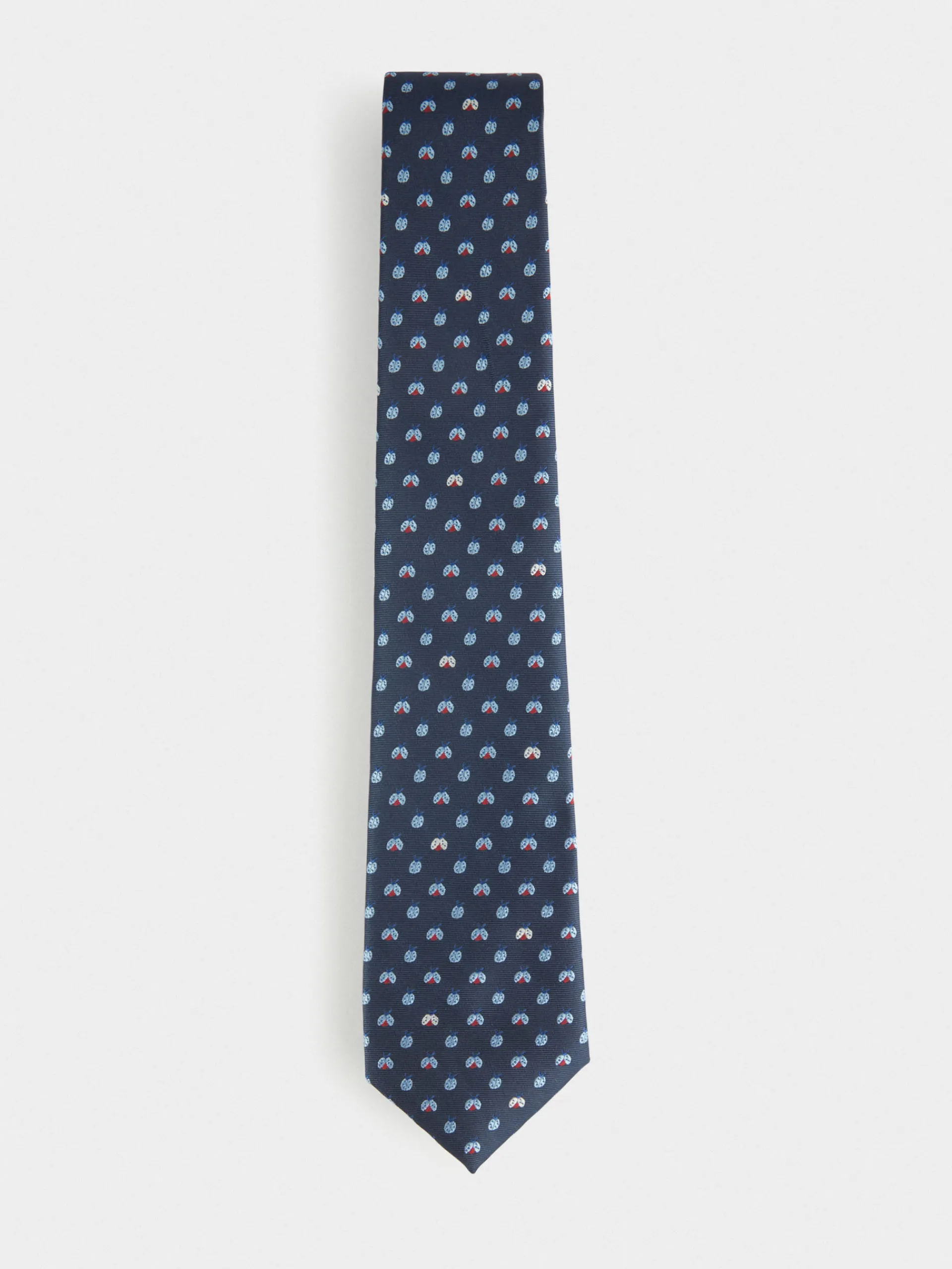 Corbata estilo jacquard con diseño estampado a contraste confeccionada en 100% poliéster. Cuenta con el logo de la marca grabado en el interior.